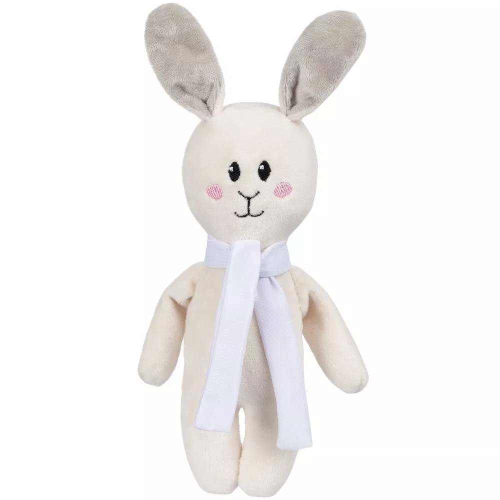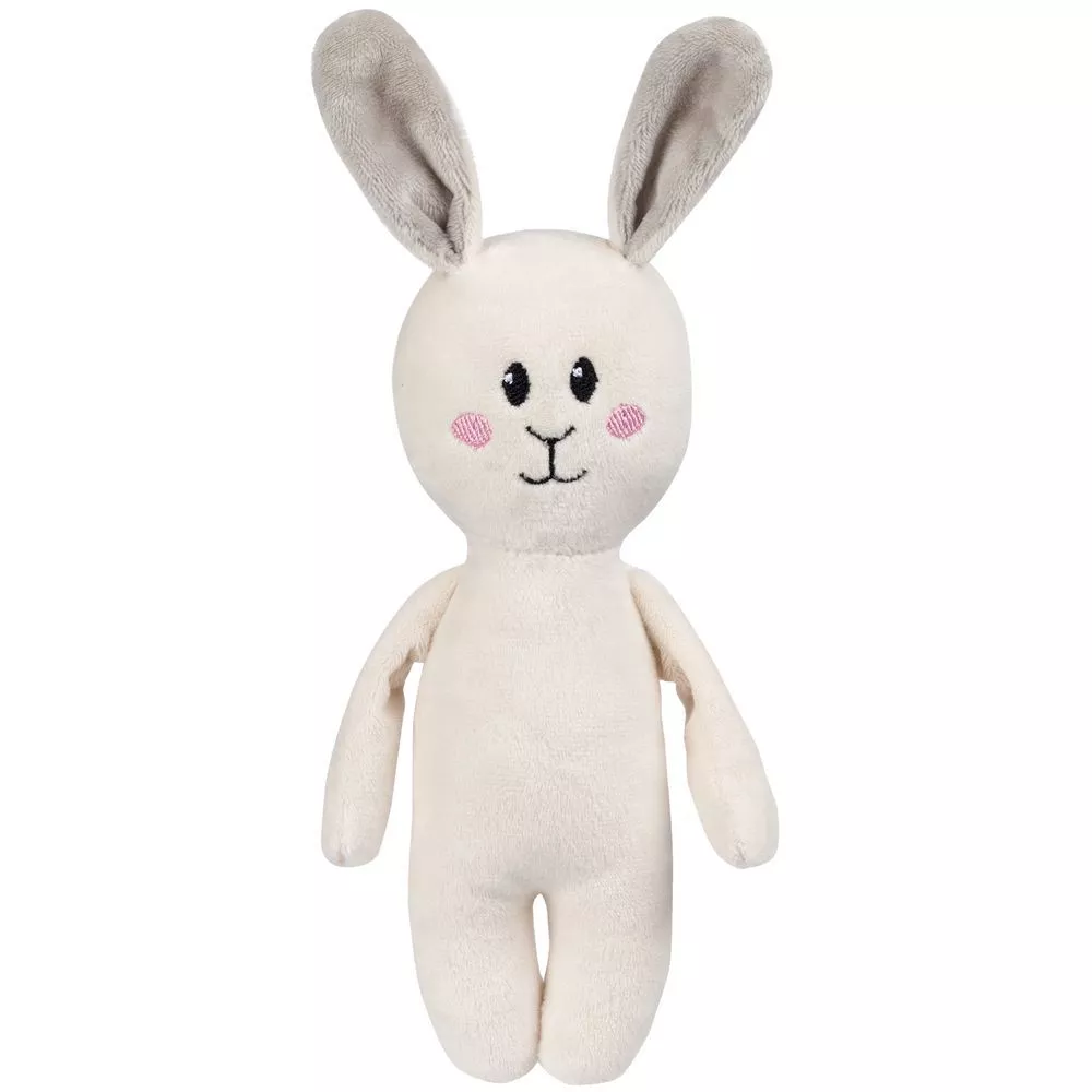 Зайчик-стесняшка из мягкого плюша с трогательно торчащими ушами влюбляет с первого взгляда и визуально, и тактильно.