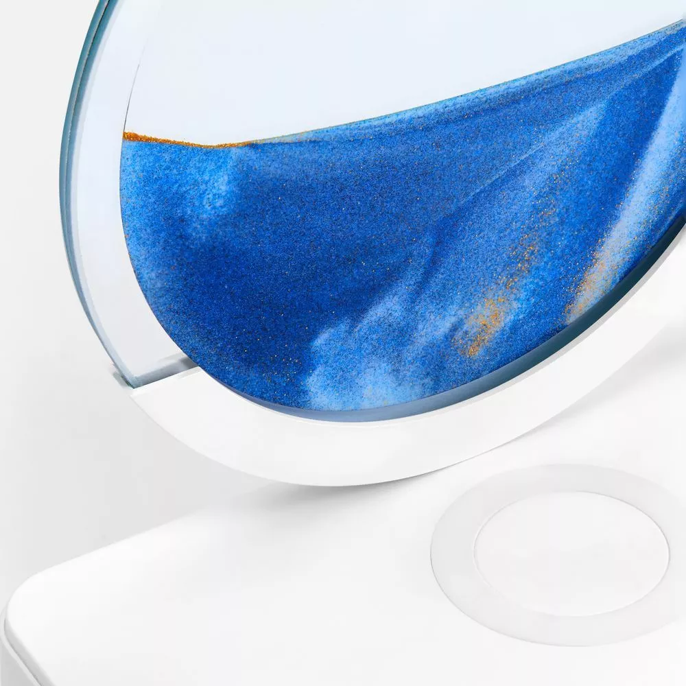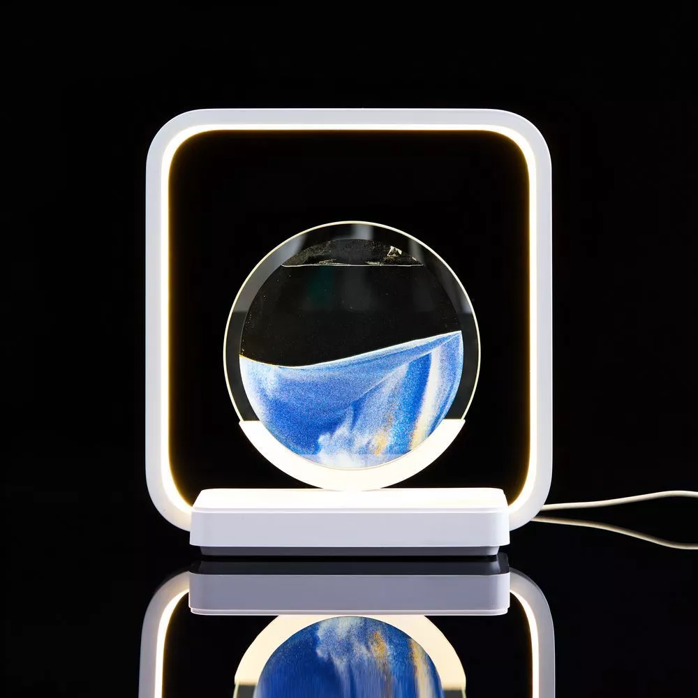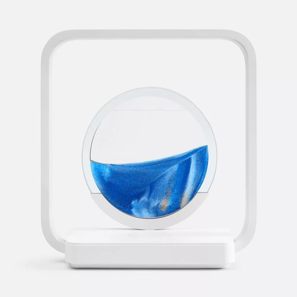 Круглую стеклянную вставку с песком можно перевернуть и наблюдать за плавным перемещением песчинок в воде. Это станет и отдыхом для глаз, и антистрессом, который успокоит во время напряженного рабочего дня. Регулируемая подсветка внутри рамки еще больше акцентирует внимание на картине и еще превращает Sandflow в стильный точечный источник света.
