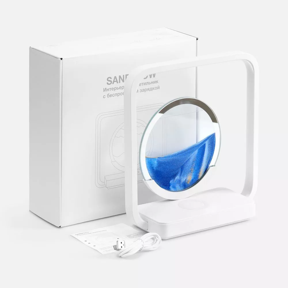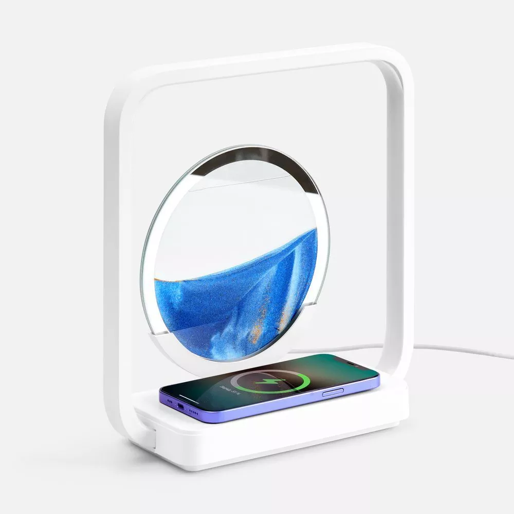 Sandflow — это одновременно и интерьерный светильник, и песочная картина-антисресс, и станция быстрой беспроводной зарядки для телефона.