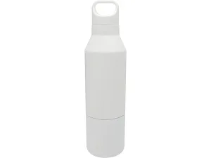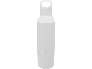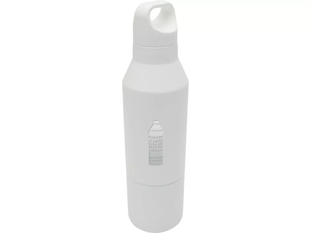 Бутылка из нержавеющей стали с двойными стенками и медной изоляцией, сертифицированная согласно RCS, со съемной крышкой. Эта многофункциональная бутылка помещается в боковой карман рюкзака и имеет удобную ручку для переноски, встроенную в крышку. Прочное порошковое покрытие снаружи. Напитки останутся горячими в течение 12 часов и холодными в течение 24 часов. Поставляется в подарочной коробке из переработанного картона. Объем бутылки: 600 мл. Объем кружки: 300 мл. Recycled stainless steel. упаковка FSC Mix Credit P5.1 CU-COC-877277.