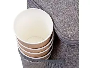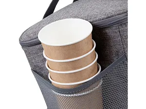 Разработана для переноски банок 0,5 л, наиболее распространенных в Европе. Система компактного хранения. Внутренний сетчатый карман на молнии для мелких предметов. Три наружных кармана. Светлая цветовая гамма для уменьшения нагревания под лучами солнца. Немаркий внешний материал с водоотталкивающей пропиткой. Герметичная подкладка. Регулируемый плечевой ремень для переноски.