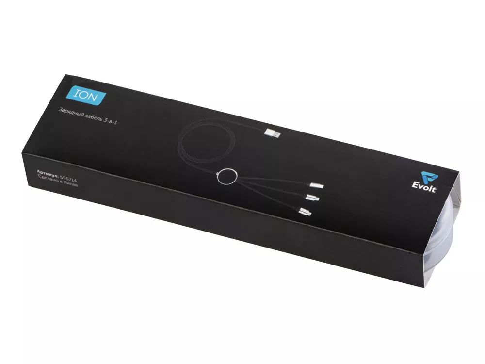 Ion от Evolt решает вечную проблему пользователей гаджетов — три наиболее популярных типа разъемов объединены в одном кабеле: Micro USB, Type-C, Lightning. Главная особенность кабеля — поле для брендирования: при нанесении логотип подсвечивается во время работы, что делает мерч особенным! - три самых популярных типа разъема - подсветка логотипа - поставляется в пластиковом футляре - можно сочетать с другими товарами Evolt для создания сетов Гравировка (оптоволоконный лазер) (Без чернения) на данный товар осуществляется бесплатно. Оплачивается только настройка оборудования в размере 950 рублей на весь тираж.