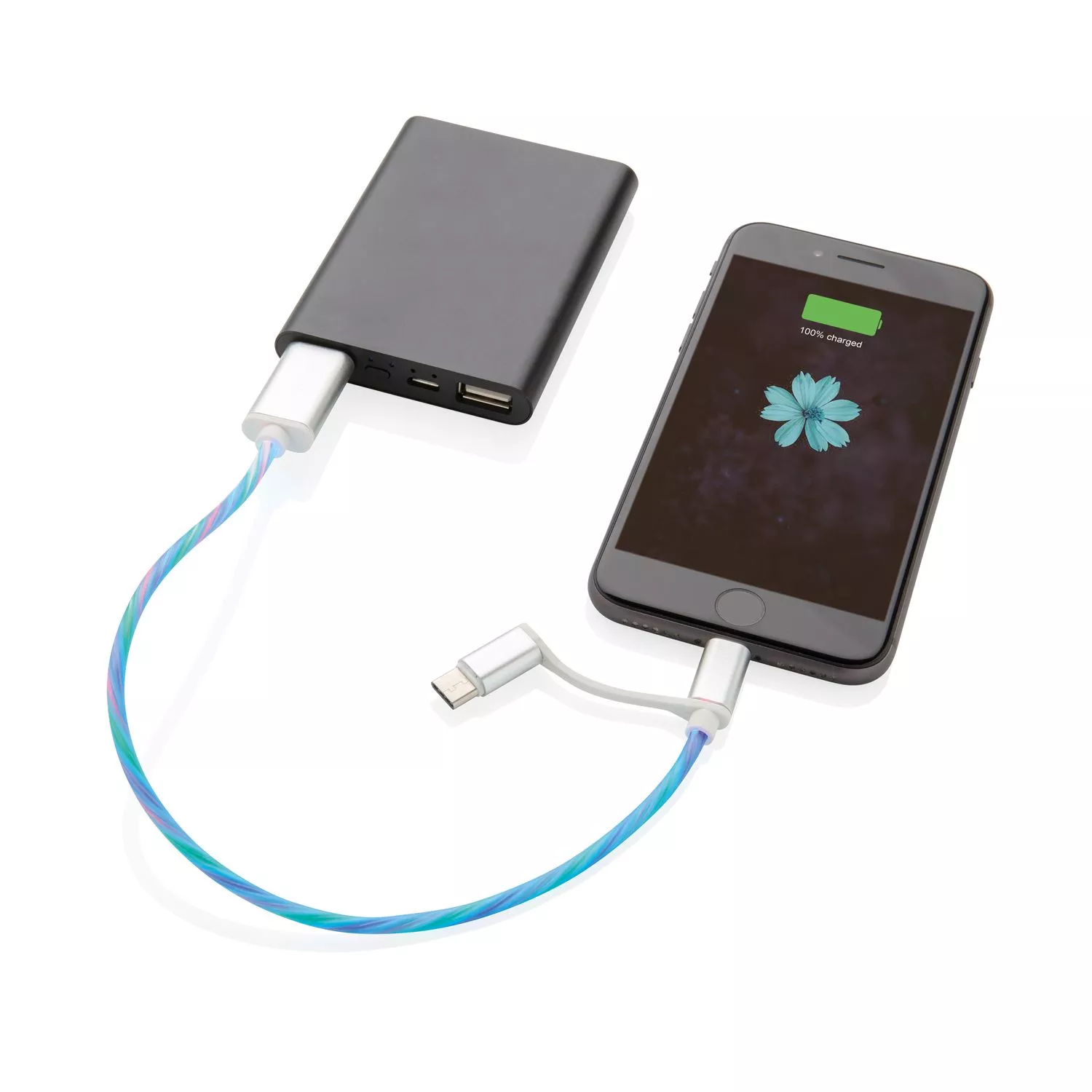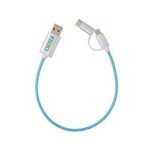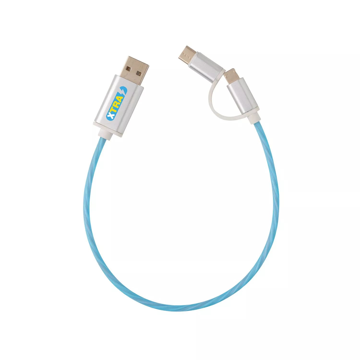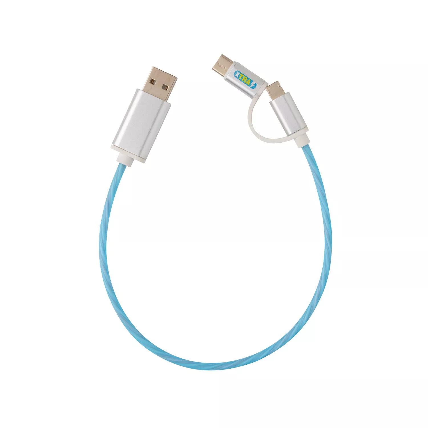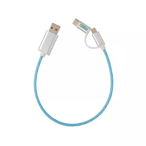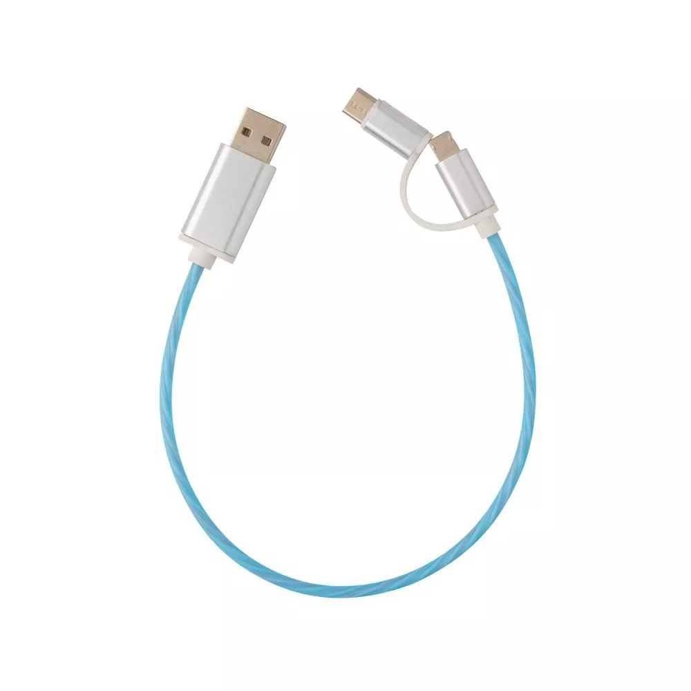 Современный кабель с тремя выходами: Type C и комбинированным разъемом для устройств на платформе iOS и на платформе Android (micro USB). Во время зарядки кабель подсвечивается. Кабель изготовлен из TPE, а разъемы – из прочного алюминия. Подходит для зарядки устройств. Длина: 30 см.