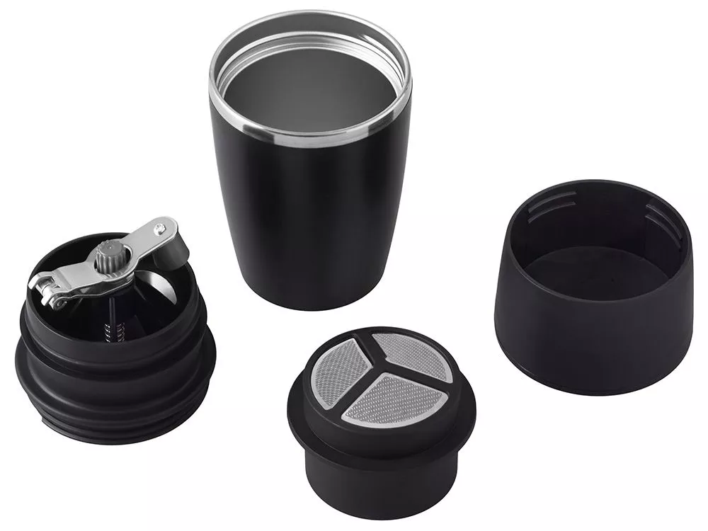 Капельная кофеварка Coffee Mate 3-в-1: свежемолотый кофе в любое время и в любом месте! Идеальный корпоративный подарок для тех, кто ценит аромат настоящего кофе и всегда в движении. Эта стильная портативная кофеварка совмещает в себе три функции: ручную кофемолку, капельную кофеварку и термостакан. Всё, что нужно — просто насыпать зерна, помолоть их встроенной кофемолкой, залить кипятком, и свежий напиток готов прямо в термостакане! Преимущества: Капельное заваривание: сохраняет вкус и аромат кофе Ручная кофемолка: наслаждайтесь напитком из только что смолотых зерен Термостакан с удобной крышкой: комфортно взять с собой — в офис, в дорогу или на природу Силиконовое нескользящее основание: надежная устойчивость даже в походных условиях Универсальное решение для кофе на ходу — будь то деловая поездка, активный отдых или просто утро в пути. Практичный, функциональный и запоминающийся подарок для коллег, клиентов и партнёров. Не рекомендуется мыть в посудомоечной машине.