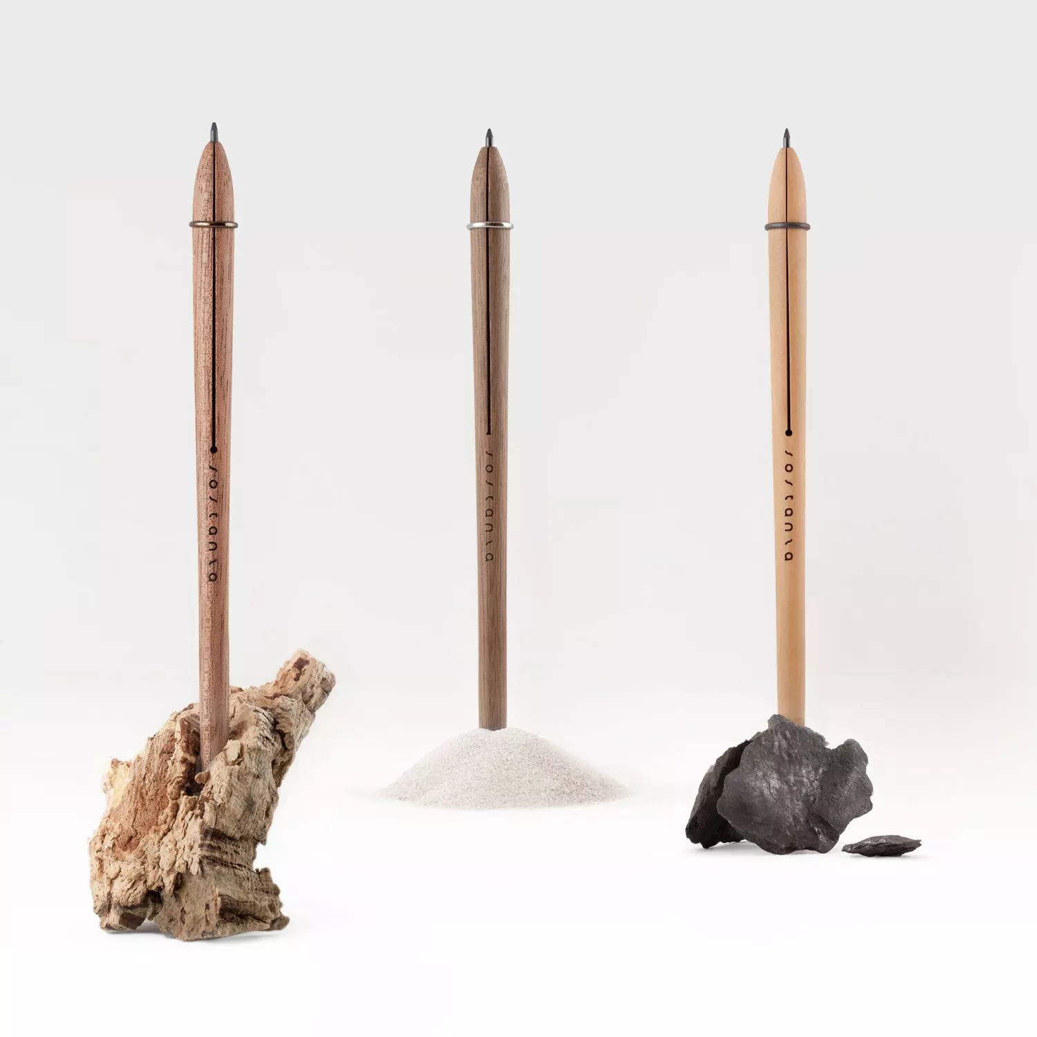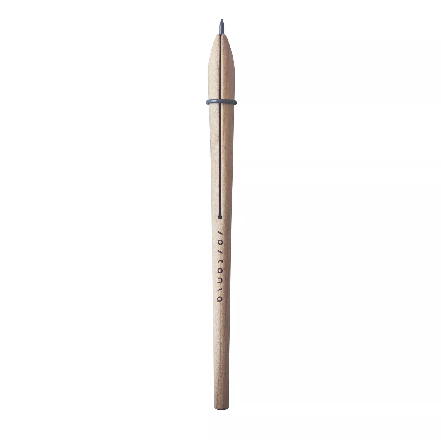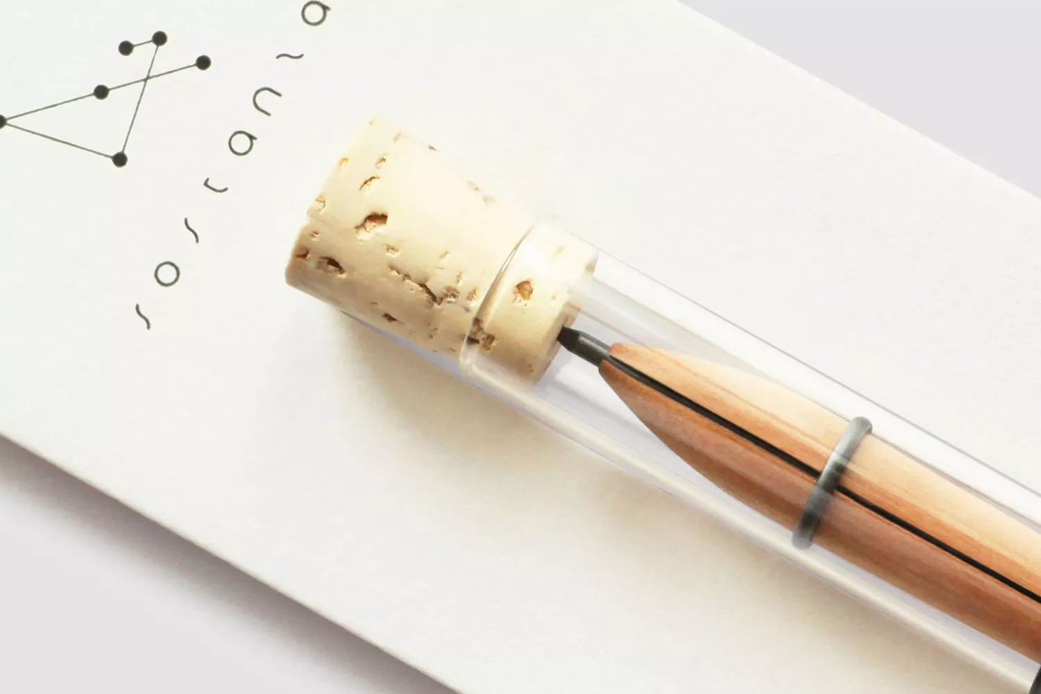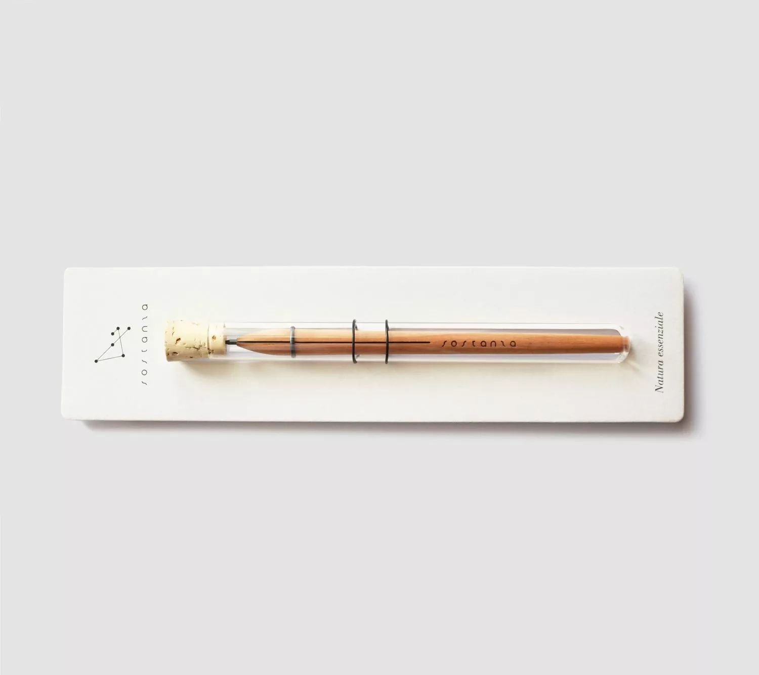Карандаш – это артефакт передающий тепло и напоминающий нам о детстве, единственный недостаток которого - короткая жизнь, ведь он уменьшается с каждым использованием. Механический карандаш, наоборот, предмет долгого использования, но состоящий из частей, имеющих способность теряться и ломаться. Пишущий инструмент SOSTANZA интерпретирует двойную функциональность через эстетику и сочетание простоты формы и драгоценных пород дерева. Он состоит из двух частей: корпуса из дерева вишни и стального кольца, которое помогает закрепить грифель и подчеркивает цвет и форму корпуса. Каждый карандаш изготовлен вручную. Обладатель премии Platinum A' Design Award. Грифель сменный, это стандартный грифель диаметром 2 мм для цанговых карандашей. Карандаш упакован в стеклянную пробирку, закрытую пробкой. Пробирка защищена треугольной картонной упаковкой белого цвета.