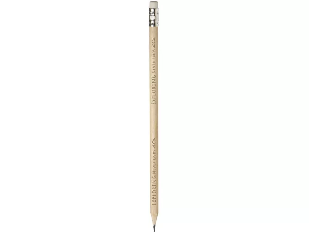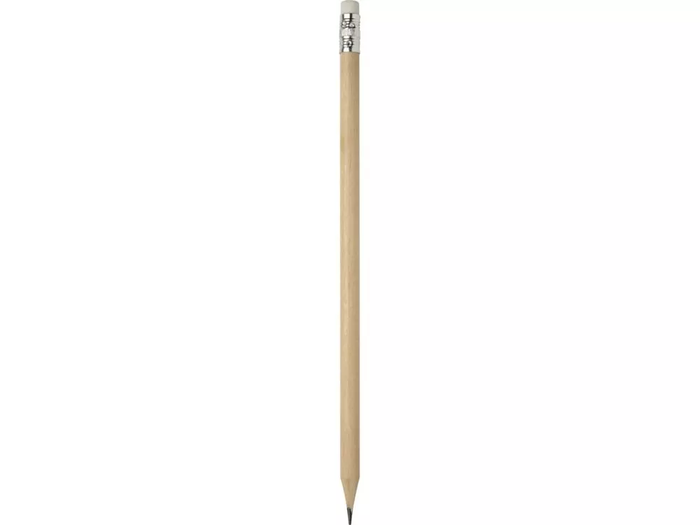 Карандаш с ластиком. Карандаш изготовлен из тополевой древесины, ластик — из графита, а обойма — из алюминия. Дерево.