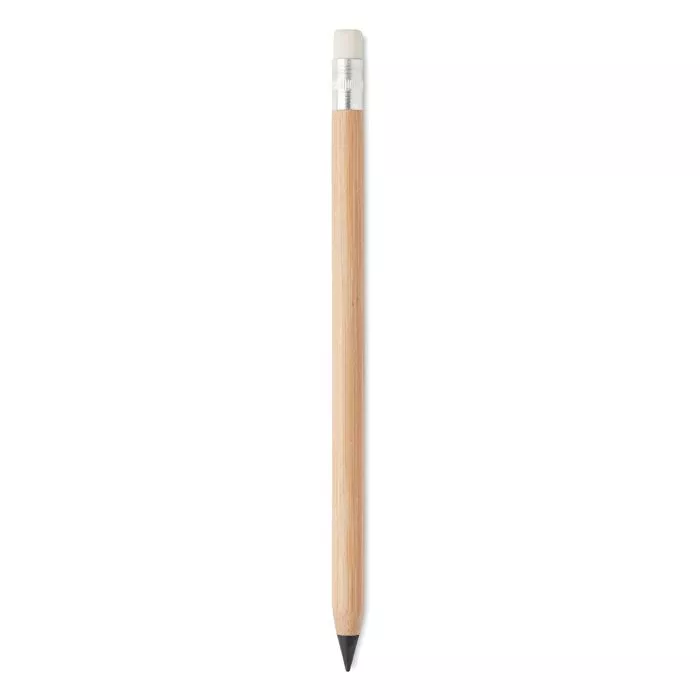 Вечный карандаш в бамбуковом корпусе с ластиком. Карандаш пишет засчет окисления поверхности бумаги наконечником из металлического сплава.