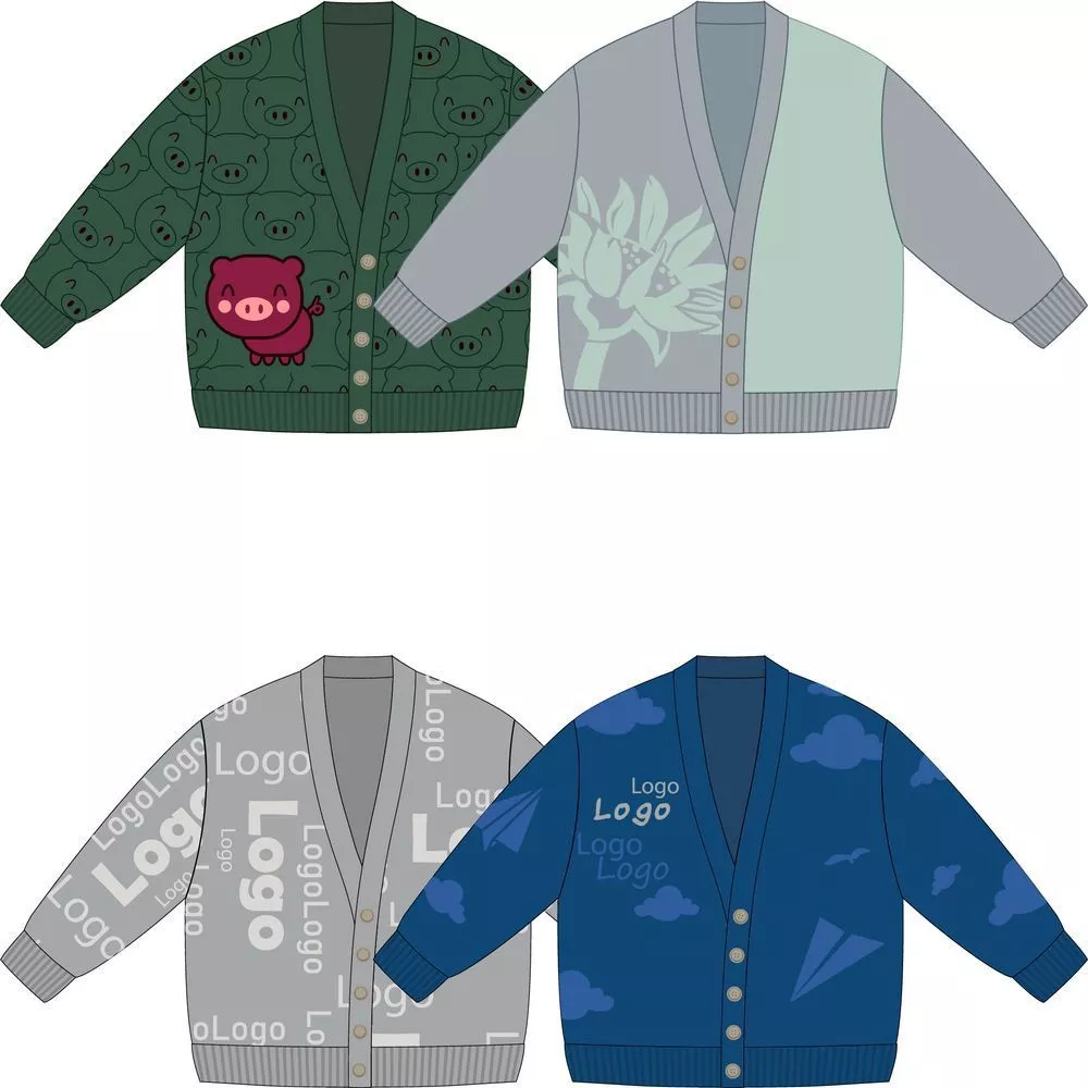 Кардиган с вывязанным логотипом и индивидуальным рисунком в фирменной цветовой гамме.