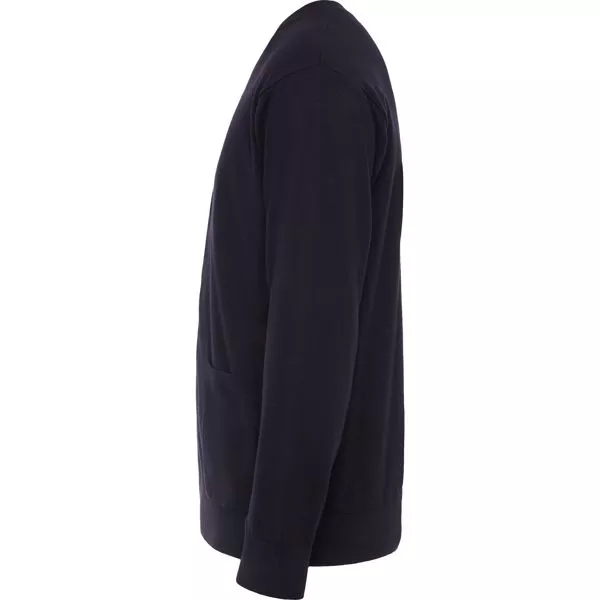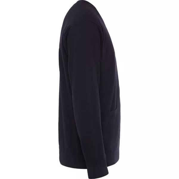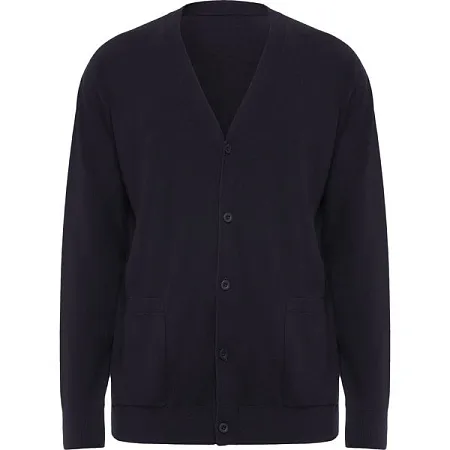 Кардиган с V·образным вырезом из мягкой стеганой ткани. Передняя застежка с пятью пуговицами. Два накладных кармана. Манжеты и эластичный пояс в рубчик.*Отрывная этикетка.