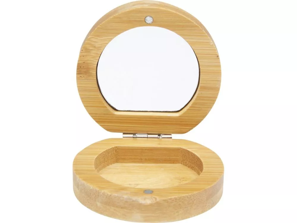 Компактное карманное зеркало в бамбуковой раме, которое можно использовать во время путешествий, ежедневного ухода за кожей или нанесения макияжа. В нижней части зеркала есть маленькое отделение для небольших аксессуаров. Используемый бамбук поставляется и производится в соответствии со стандартами устойчивого развития.