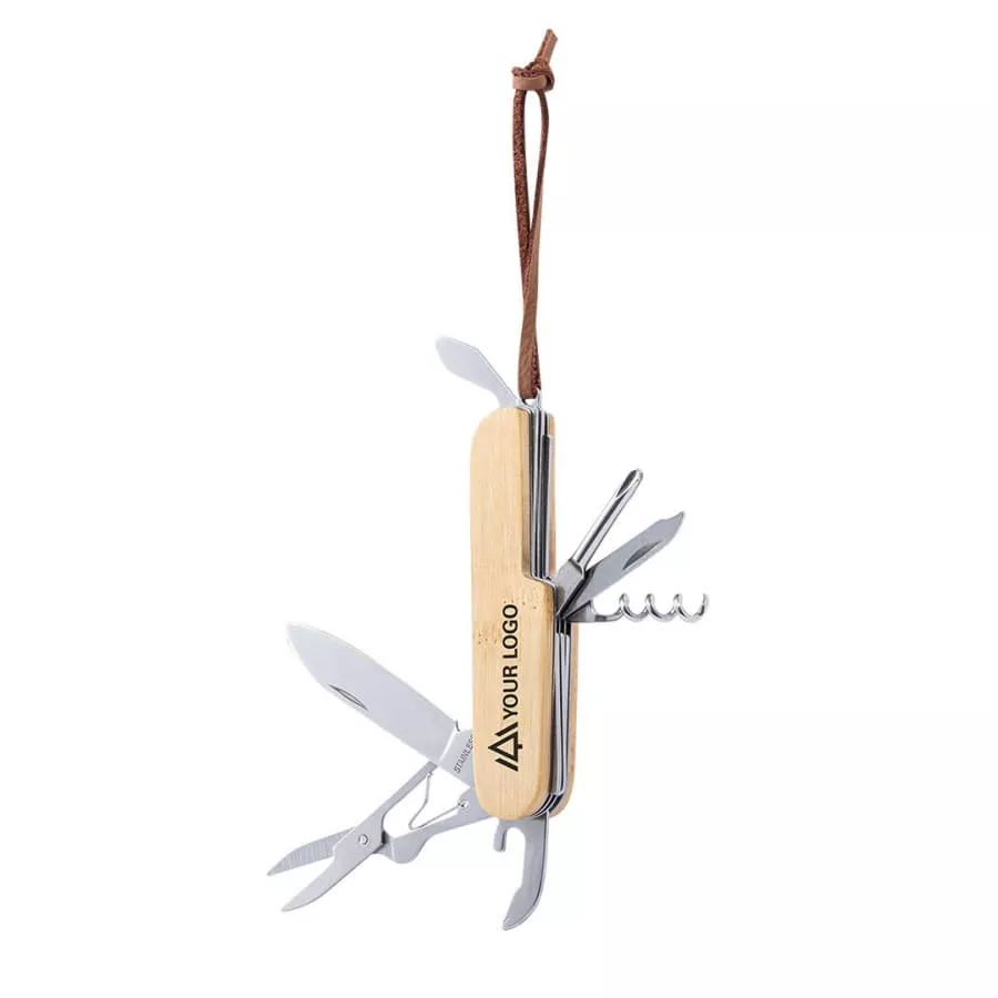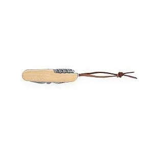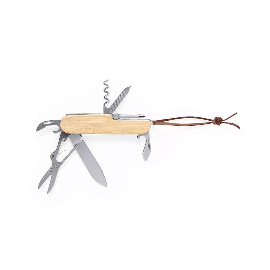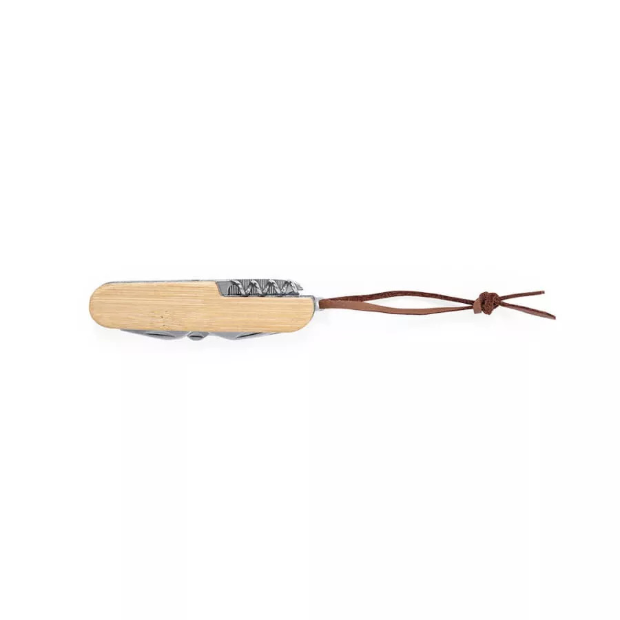 Карманный универсальный нож мультитул с 9 функциями. Механизм сделан из прочной нержавеющей стали, а ручка выполнена из натурального бамбука. Большой функционал, в том числе ножницы, большое и малое лизвие, отвертки шлицевая и крестовая, штопор для вина и консервный нож-открывашка, пилка для ногтей. Дополняет образ крепкого и натурального инстумента ремешок из кожзама. Нож мультитул станет верным спутником и незаменимым помощником для всех любителей путешествий и приключений. Упакован в индивидуальную коробку.
