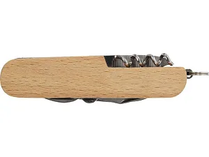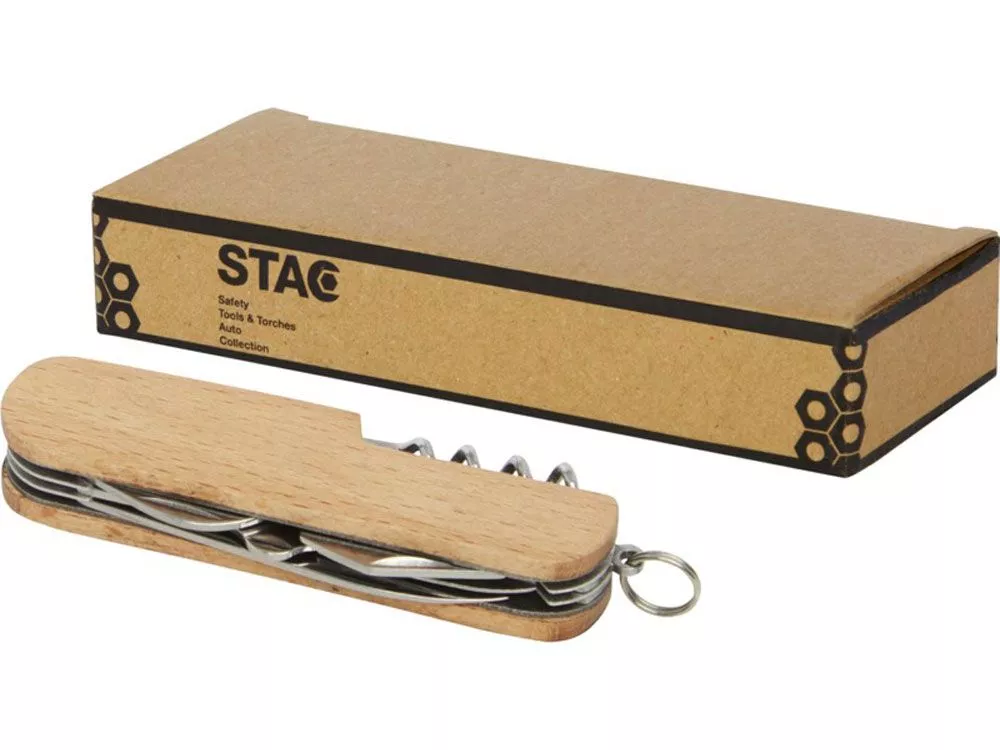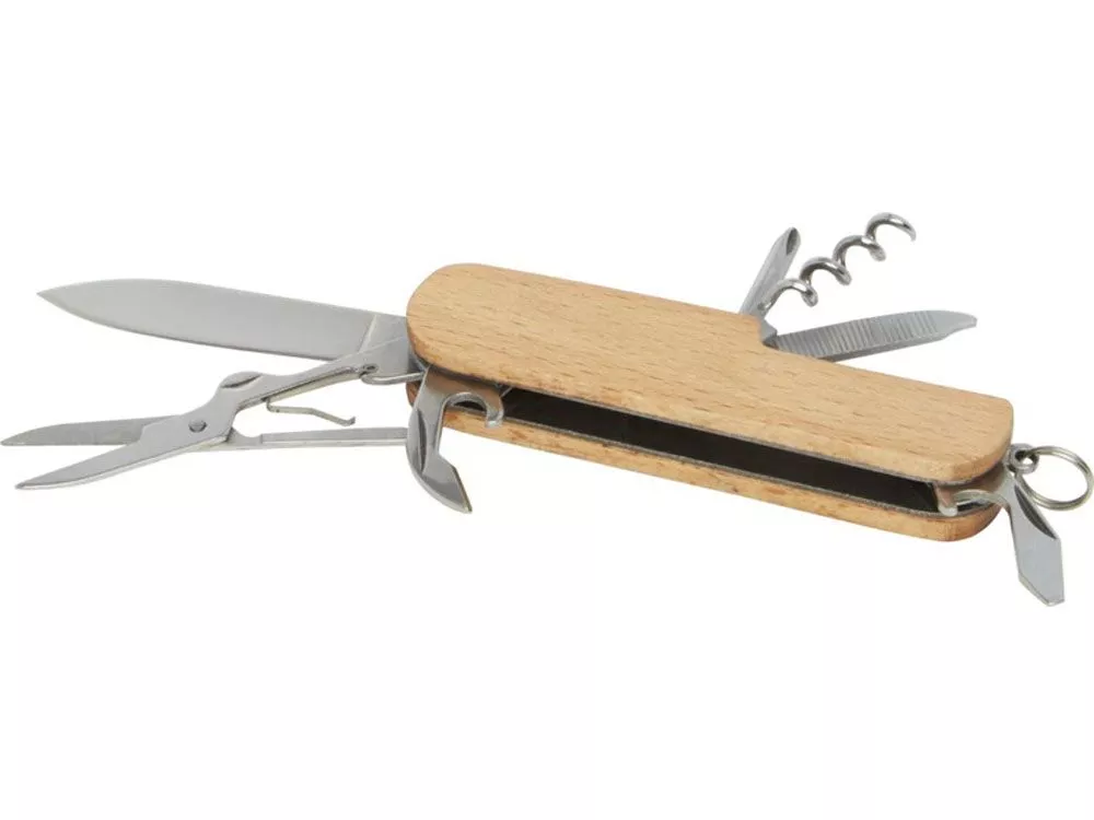 Прочный и долговечный компактный карманный нож из высококачественной нержавеющей стали с рукоятками из буковой древесины. Этот карманный нож должен быть у любого скаута, мастера и любителя отдыха на природе. Имеет 7 функций: нож, штопор, напильник/очиститель напильника, кольцо для ключей, плоская отвертка, открывалка для бутылок/банок и ножницы. Используемая буковая древесина поступает от надежных поставщиков, соблюдающих все экологические и социальные нормы. Размер в открытом состоянии 17 x 2,5 см, а в закрытом — 9,5 x 2,5 см. Поставляется с инструкцией по эксплуатации и упакован в подарочную коробку из переработанного картона размером 12 x 4,5 x 2 см.