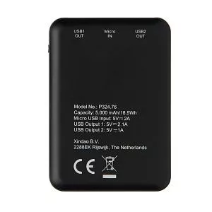 Куда бы вы ни пошли, ваш внешний аккумулятор всегда будет под рукой! Благодаря своей ультра-компактности, этот внешний аккумулятор емкостью 5 000 мАч с легкостью поместится в ваш карман. Корпус устройства сделан из легкого ABS. Энергии полностью заряженного литий-полимерного аккумулятора высокой плотности класса А хватит, чтобы зарядить ваш смартфон до трех раз. Двойной USB разъем позволит заряжать два устройства одновременно. Удобные световые индикаторы отображают уровень заряда, напоминая о необходимости подзарядить устройство. Напряжение на входе: 5V/2A; напряжение на выходе USB 1: 5V/2A, USB 2: 5V/1A.