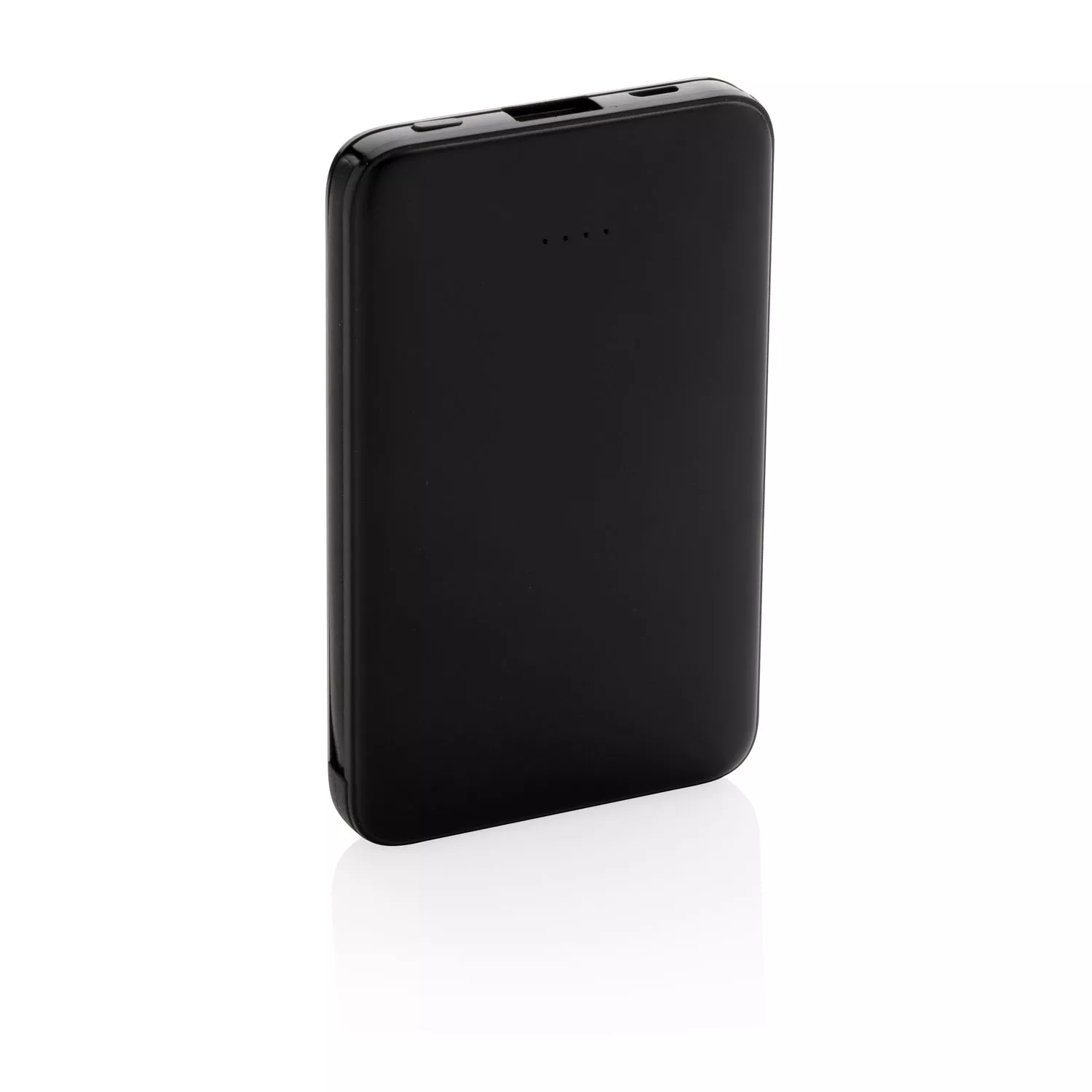 Этот компактный пауэрбанк с приятным на ощупь матовым корпусом из ABS легко носить с собой. Емкость аккумулятора составляет 5000 мАч. В корпус устройства встроены TPE кабели с разъемом Type C и комбинированным разъемом для устройств на платформе iOS и на платформе Android (micro USB). Энергии полностью заряженного литий-полимерного аккумулятора высокой плотности хватит, чтобы зарядить ваш смартфон до двух раз. Удобные световые индикаторы отображают уровень заряда, напоминая о необходимости подзарядить устройство. Напряжение на входе и на выходе: 5V/2A.