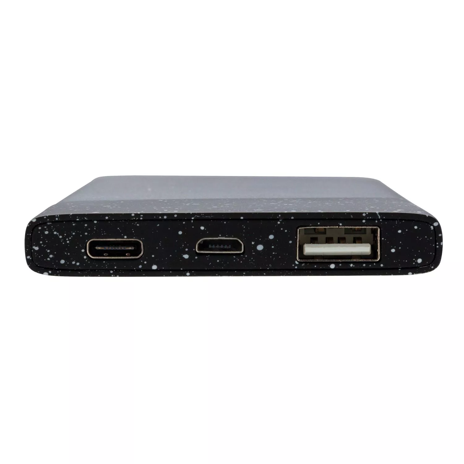 Куда бы вы ни пошли, ваш внешний аккумулятор всегда будет под рукой! Благодаря своей компактности, этот мощный и удобный внешний аккумулятор емкостью 5 000 мАч с легкостью поместится в ваш карман. Корпус устройства сделан из высококачественного алюминия. Полностью заряженный он способен подзарядить ваш телефон до 2 раз. В устройстве используется литий-полимерный аккумулятор высокой плотности класса А емкостью 5 000 mAh. Индикаторы питания будут показывать уровень оставшегося заряда, поэтому вы всегда будете знать, когда следует подзарядить аккумулятор. Micro USB вход: 5V/2A; Type C вход: 5V/2A; Выход: USB 5V/2. Устройство упаковано в подарочную коробку, в комплект входит нейлоновый micro USB кабель для зарядки.