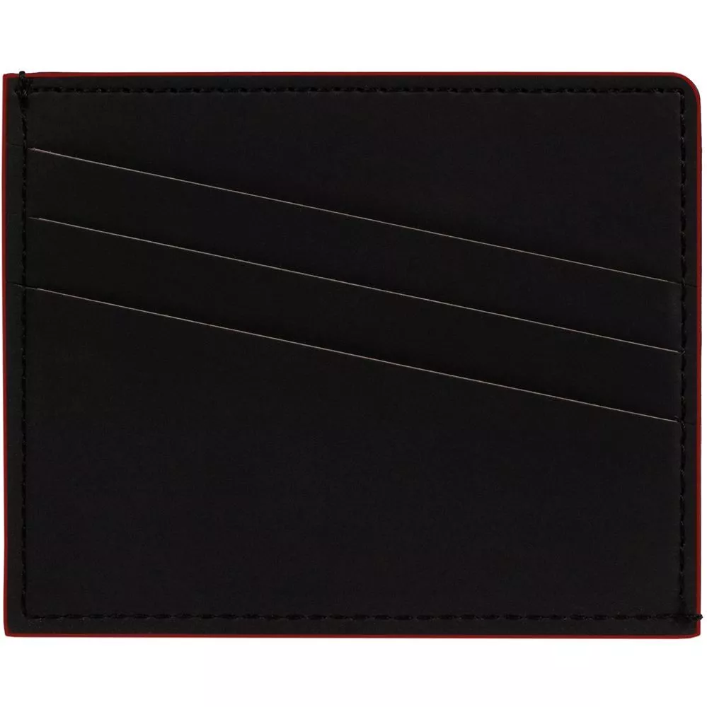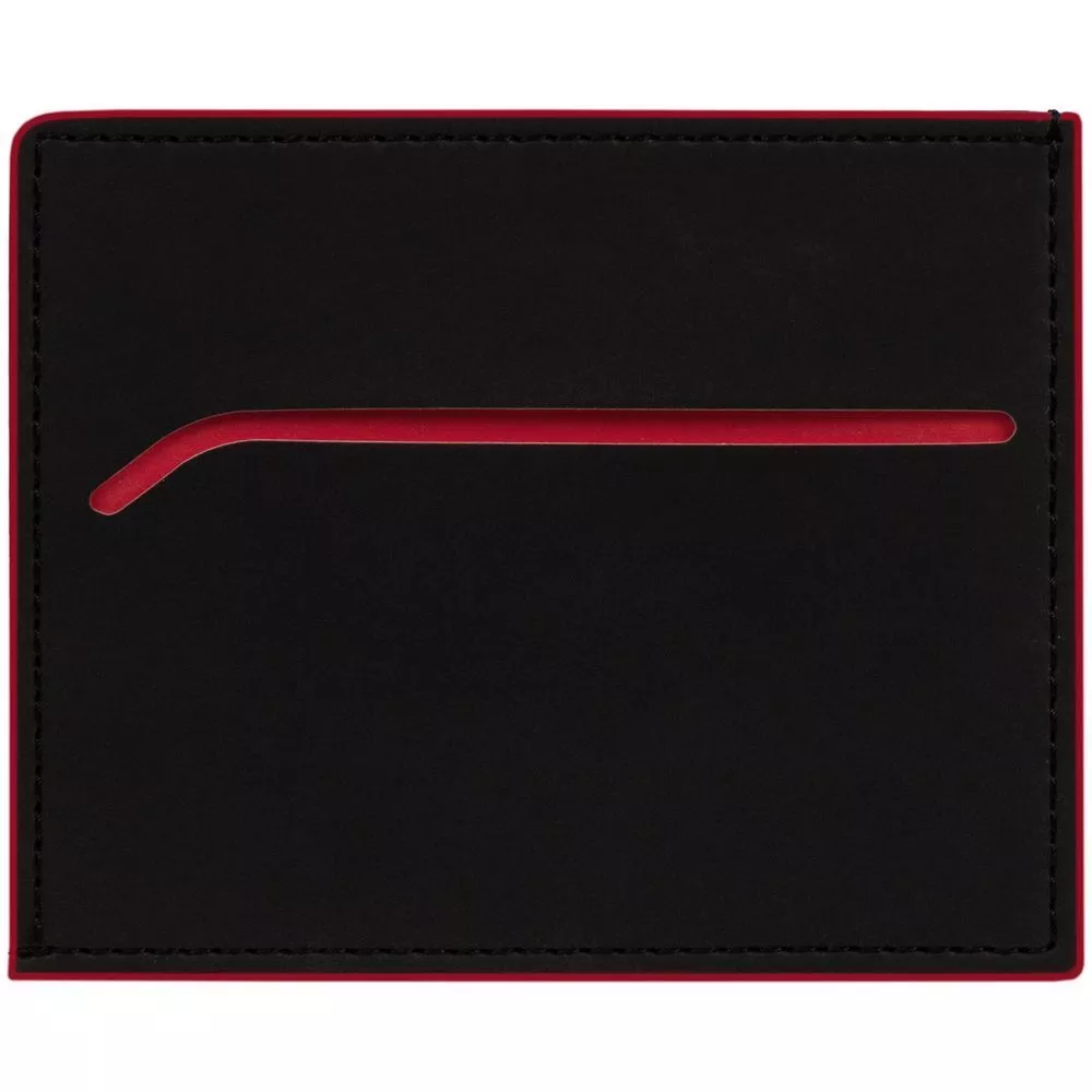 Чехол выполнен из материала Soft Touch Pearl, черный АА, дополнен окрашенным срезом края и цветным внутренним карманом из материала Latte, красный РР.