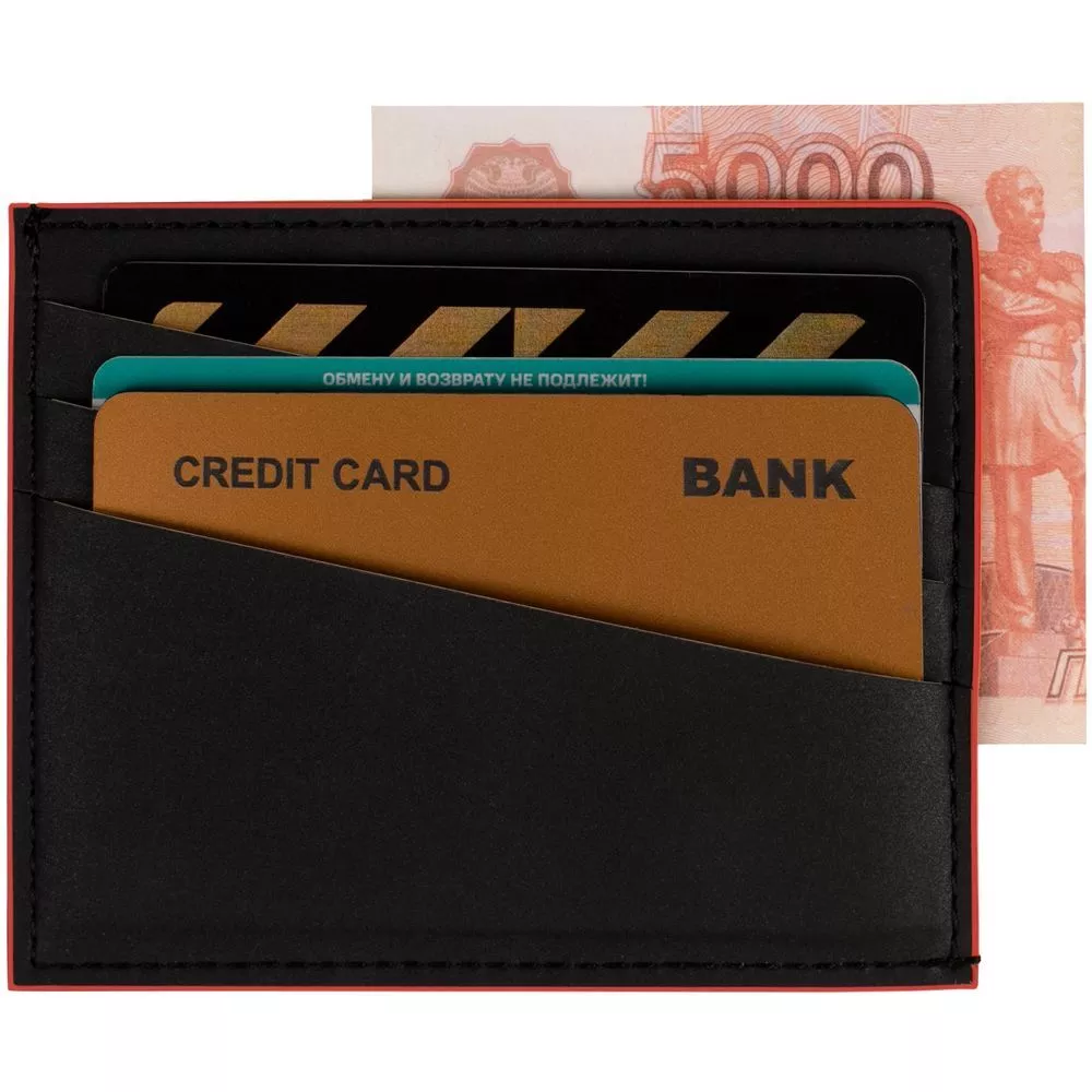 Имеет 4 отделения для кредитных карт и 1 отделение для купюр.