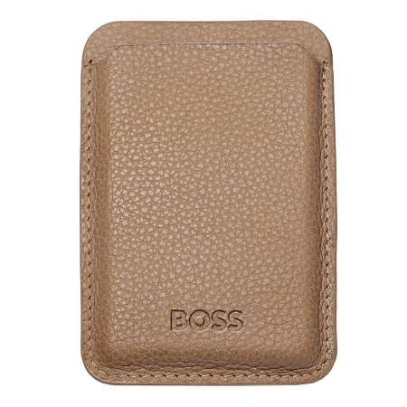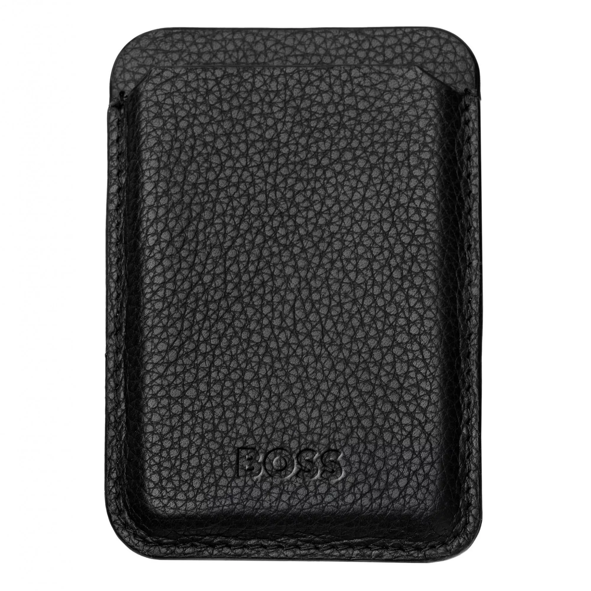 Наш магнитный держатель для карт изготовлен из натуральной кожи высшего качества. Он оснащен системой MagSafe, которая позволяет прикрепить его к задней части любого телефона, оснащенного этой технологией. Эта черная версия имеет красивую матовую текстуру с шагреневым зерном и имеет тонкий тисненый логотип BOSS. Последний штрих — подкладка с монограммой, которая добавляет еще один тонкий элемент брендинга. Несмотря на свой минималистичный и компактный дизайн, он все еще может вмещать до 5 карт.