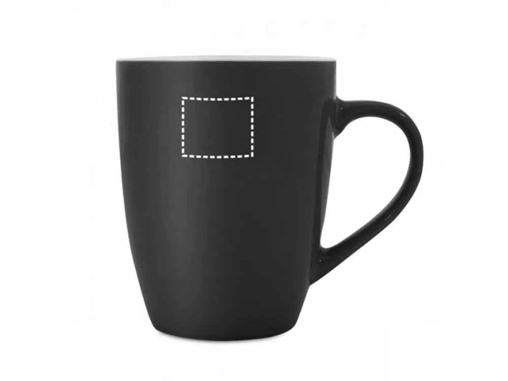 Керамическая кружка с емкостью до 370 мл, которая поставляется в коробке. Вид нанесения, рекомендуемый поставщиком: тампопечать, низкотемпературный обжиг, высокотемпературный обжиг