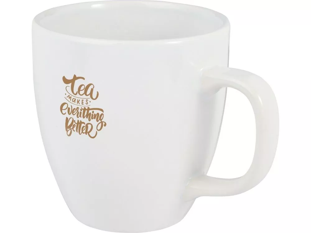 Керамическая кружка Moni имеет модное глянцевое покрытие, дающее ощущение гладкости при прикосновении. Благодаря большой ручке кружку удобно держать. Кружка достаточно универсальна для использования как с горячими, так и с холодными напитками, что позволяет наливать в нее кофе, чай, суп и прочие жидкости. Объем 430 мл. Можно мыть в посудомоечной машине независимо от методов нанесения печати. В подарочной коробке из переработанного картона.