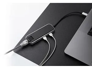 Сетевой адаптер Rombica Type-C Chronos Black. • Для ноутбуков с интерфейсом USB Type-C. • Сетевой адаптер. • 3 высокоскоростных порта USB 3.0. • Не требует дополнительного питания. • Алюминиевый корпус. • Компактный дизайн. Коннектор для подключения к компьютеруUSB Type-C 3.0 Male. Интерфейсы: • 3 × USB 3.0 Type-A SuperSpeed • 1 × LAN IEEE 802.3 Стандарты LAN: IEEE802.3u 10/100 Мбит/с. Совместимость с ОС: macOS 10.10 и выше, Windows 8.1, Windows 10. Рабочее напряжение: 5В. Питание: от Type-C порта (пассивное). Длина провода: 155 мм. Гравировка (Без чернения) на данный товар осуществляется бесплатно. Оплачивается только настройка оборудования в размере 500 рублей на весь тираж.