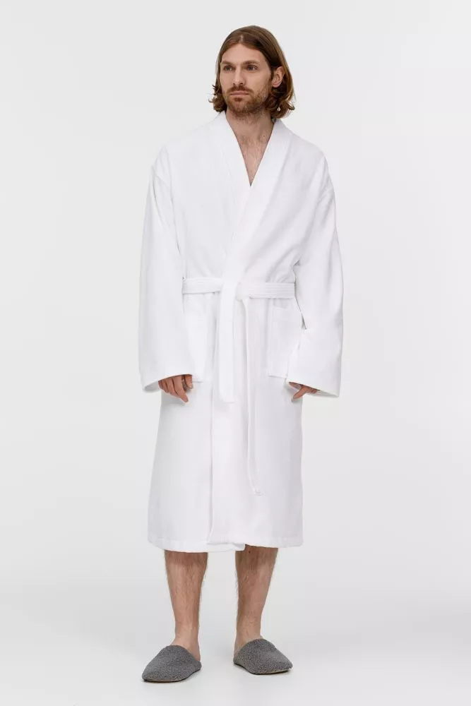 Махровый халат Aeris — это оптимальное сочетание комфорта и стиля. Он изготовлен из чистого плотного хлопка с приятным эффектом велюра, который достигается благодаря аккуратной стрижке махрового полотна. Одновременно мягкий и легкий, Aeris обволакивает нежностью с первого прикосновения.