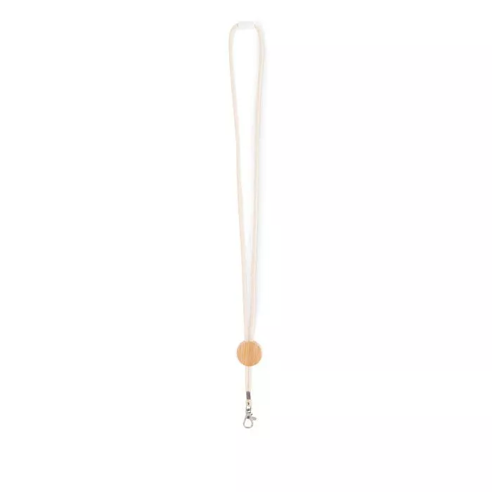 Шнурок из хлопкового шнура с круглой бамбуковой деталью, металлическим крючком и предохранительным отрывом. Длина: 50 см.