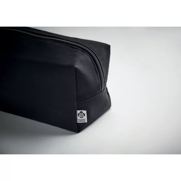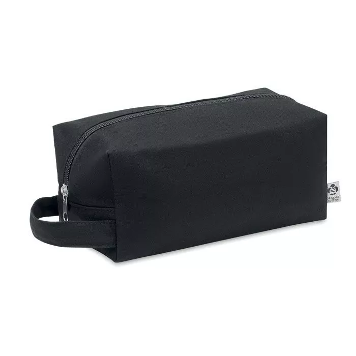 Косметичка с одной молнией из органического холста плотностью 220 гр/м². Боковая ручка и дно из полиуретана. Подкладка из органического хлопка 140 гр/м².
