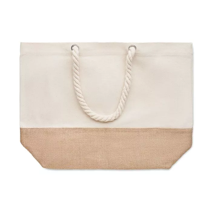 Пляжная сумка или сумка для покупок из холста с ручкой из шнура и джутовыми деталями. 280 гр/м².