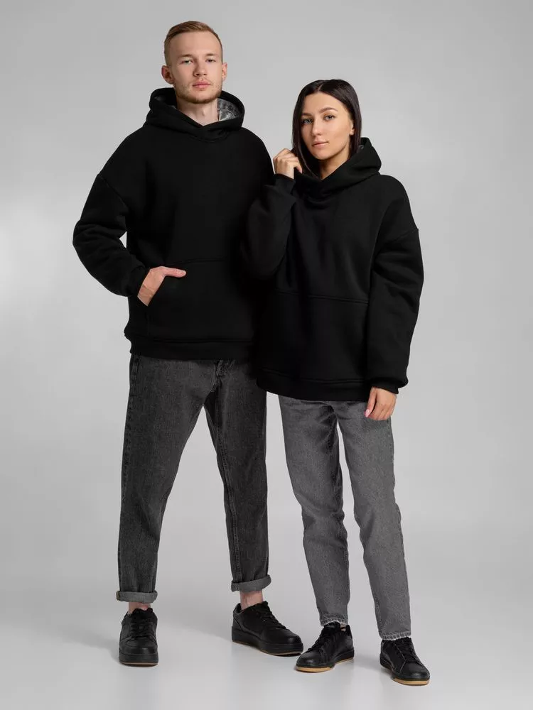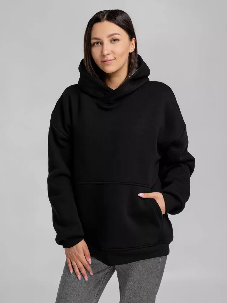 Худи унисекс со спущенным плечом и карманом-кенгуру.