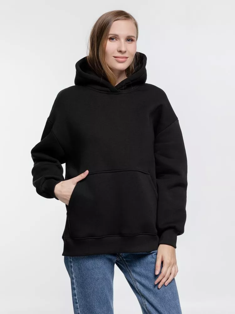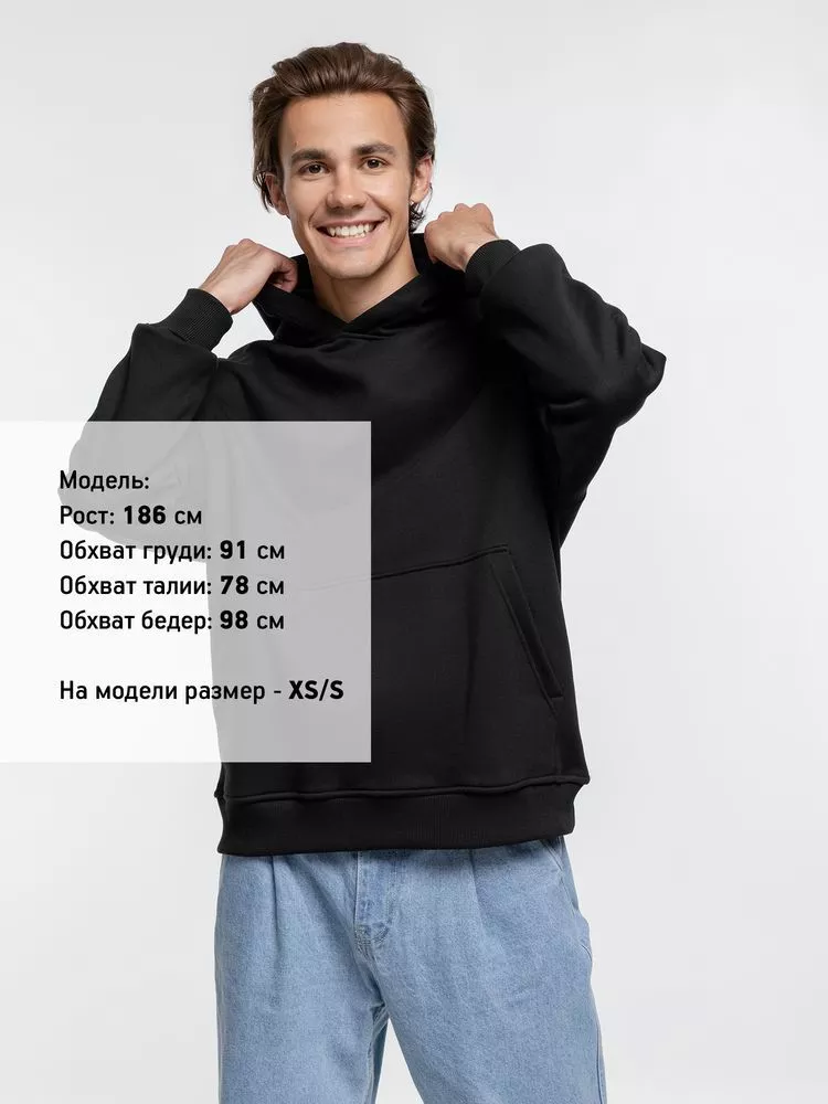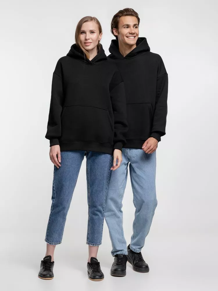 Худи унисекс со спущенным плечом и карманом-кенгуру.