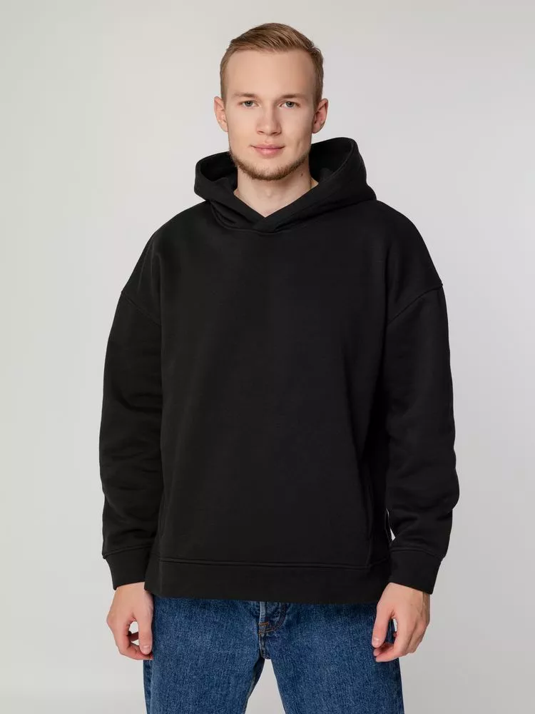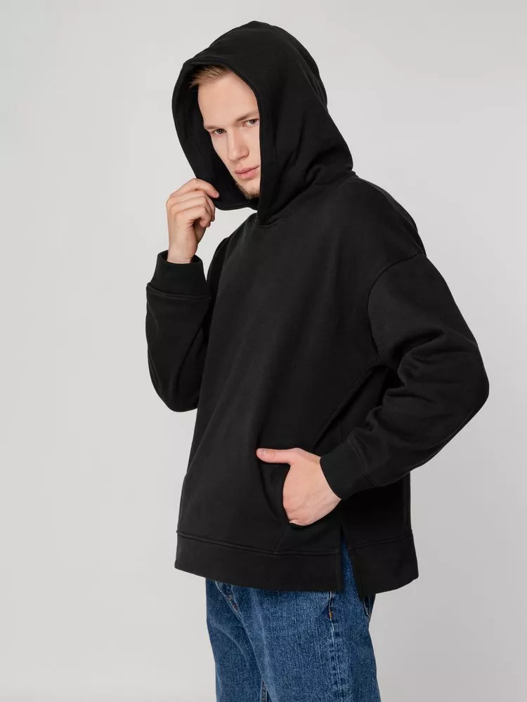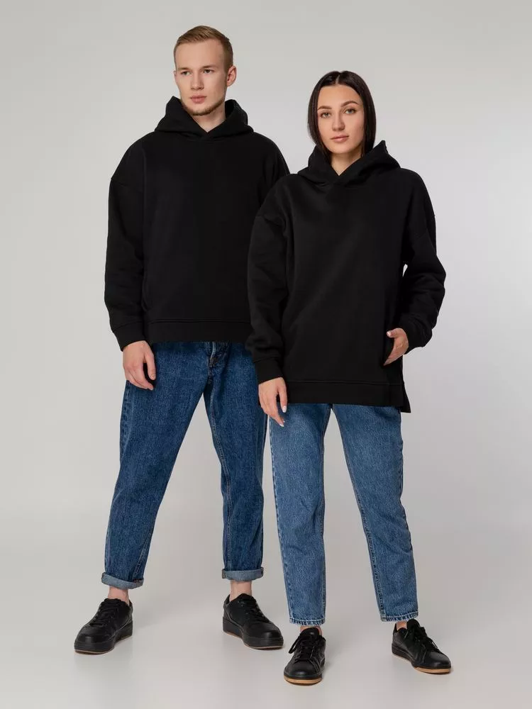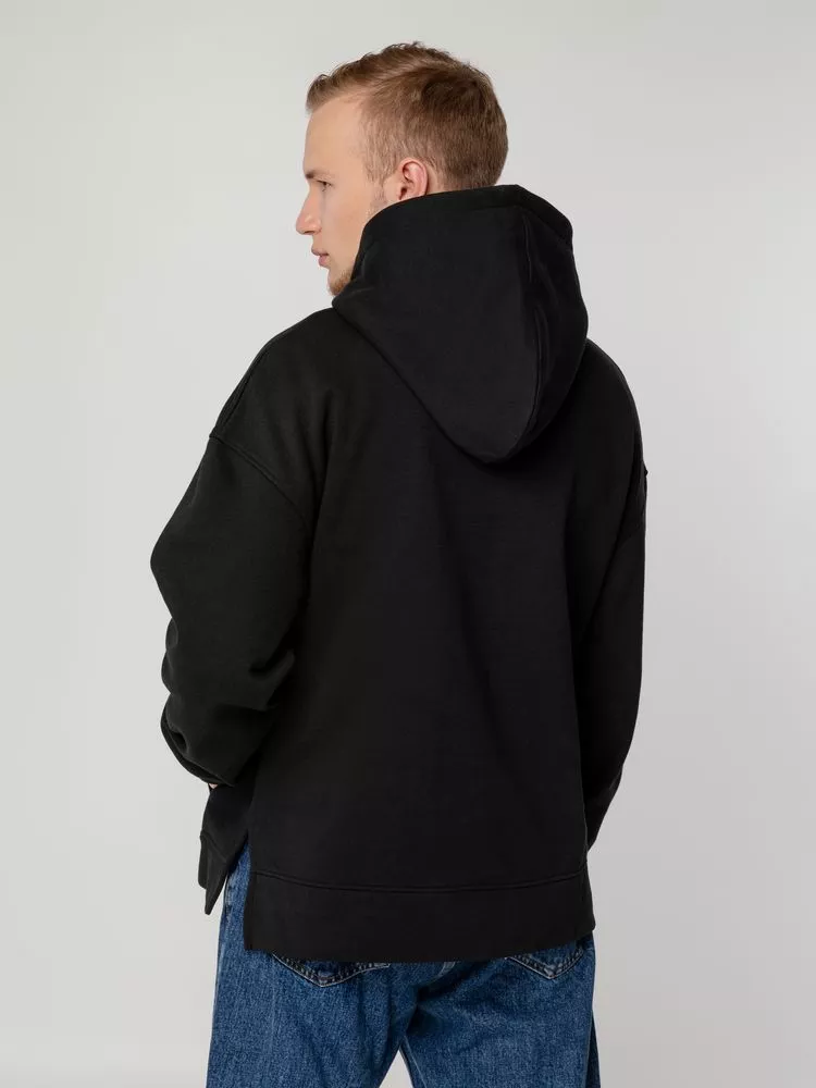 Худи унисекс оверсайз со спущенным плечом и внутренним карманам кенгуру.