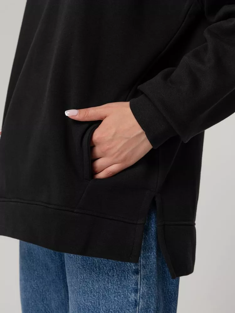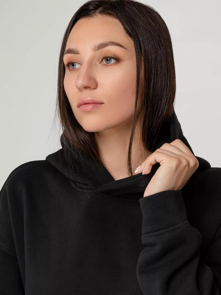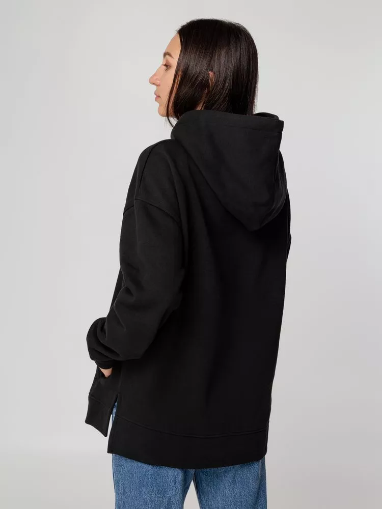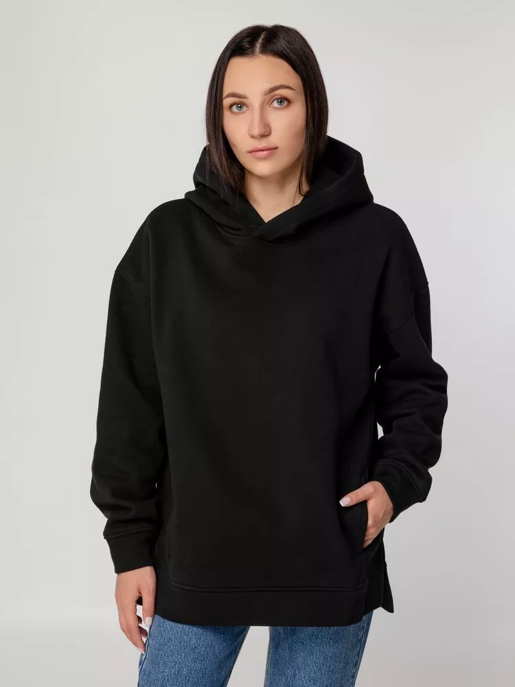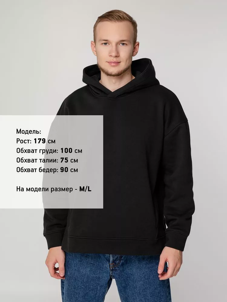 Худи унисекс оверсайз со спущенным плечом и внутренним карманам кенгуру.
