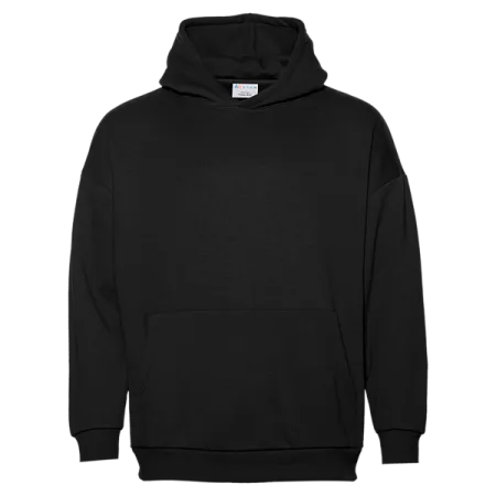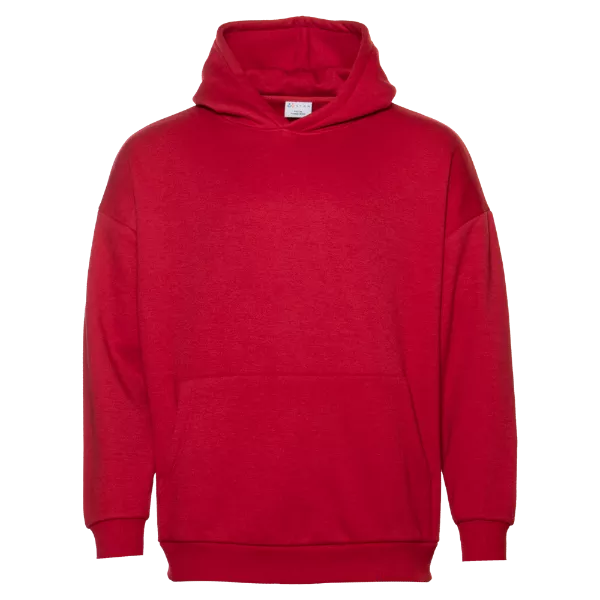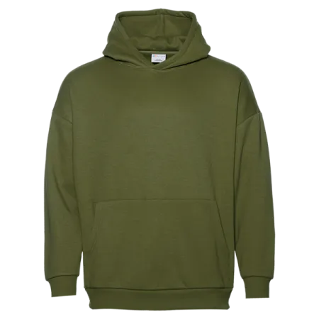 Толстовка-унисекс представлена в широком размерном ряду. Модель оверсайз с капюшоном и карманом-кенгуру.