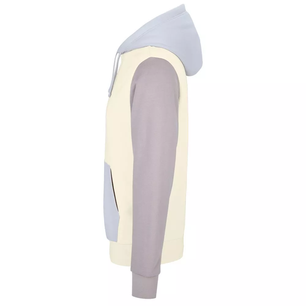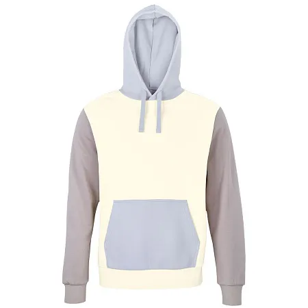 Трехцветное утепленное худи унисекс из органического хлопка и переработанного полиэстера. Удобный накладной карман-кенгуру. Края рукава и низ изделия выполнены резинкой. Внутренняя сторона с начесом.