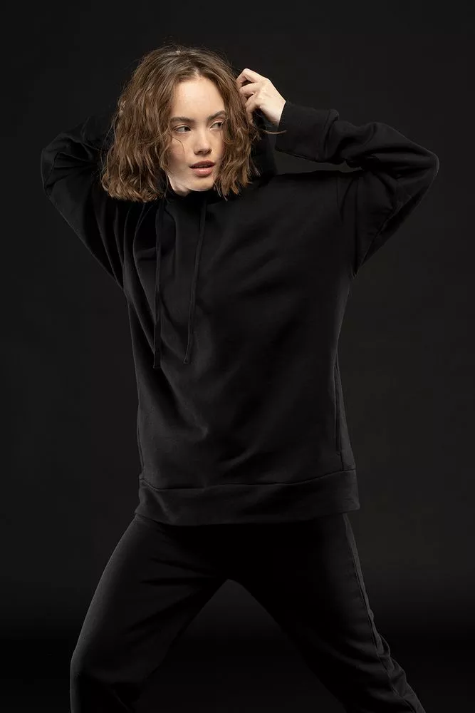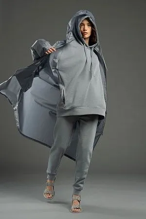 Худи унисекс свободной посадки со спущенным плечом.