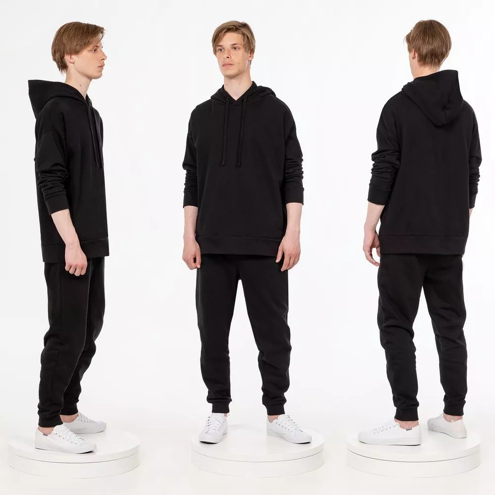Базовая повседневная одежда актуального покроя в стиле унисекс разработана в рамках единой коллекции и легко собирается в комплекты. Специально спроектированные лекала и технологии пошива открывают простор для любых вариантов кастомизации и нанесения изображений. На изделиях нет лейблов с айдентикой бренда — но предусмотрены петельки для навешивания индивидуальных этикеток.
