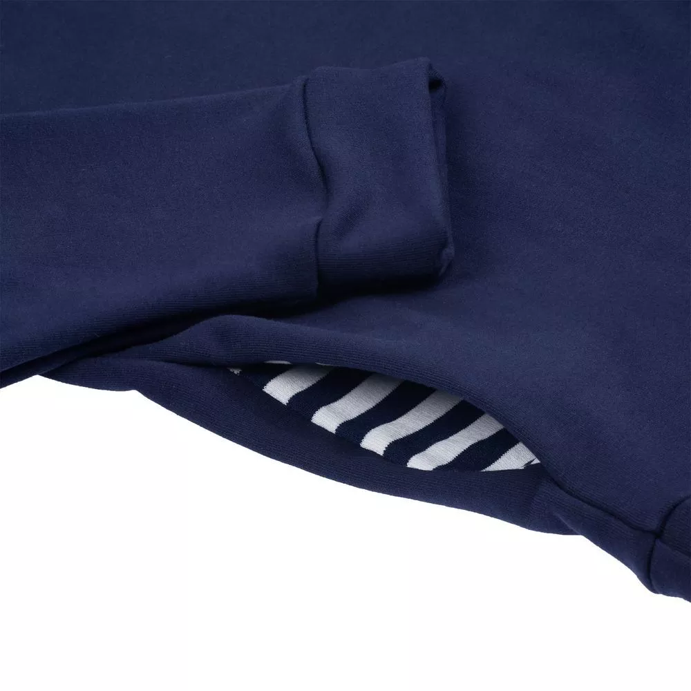 Морской стиль в одежде — это всегда особая атмосфера, пропитанная соленым воздухом, легким бризом и шумом волн. Худи Seamark подарит ощущение свободы и легкости. Его с удовольствием можно носить как в городе, так и во время отдыха на яхте, путешествия на круизном лайнере или плавания на парусной регате. Дополнительный шарм изделию придает хлопковый канат для регулировки капюшона и полосатая подкладка на капюшоне и в карманах.