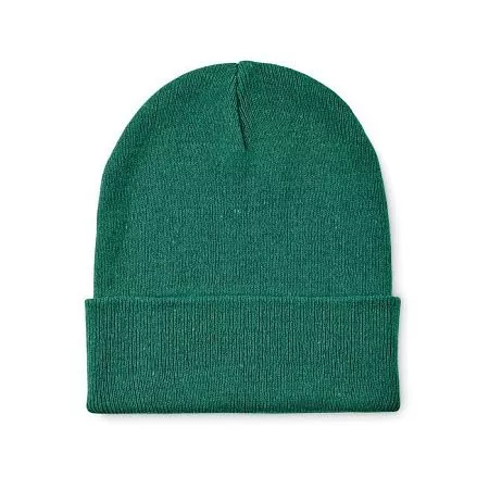 Unisex knitted beanie hat in soft stretchable polyester (64%) and acrylic (36%) with rolled up cuff. A stretchy one-size-fits-all design.