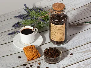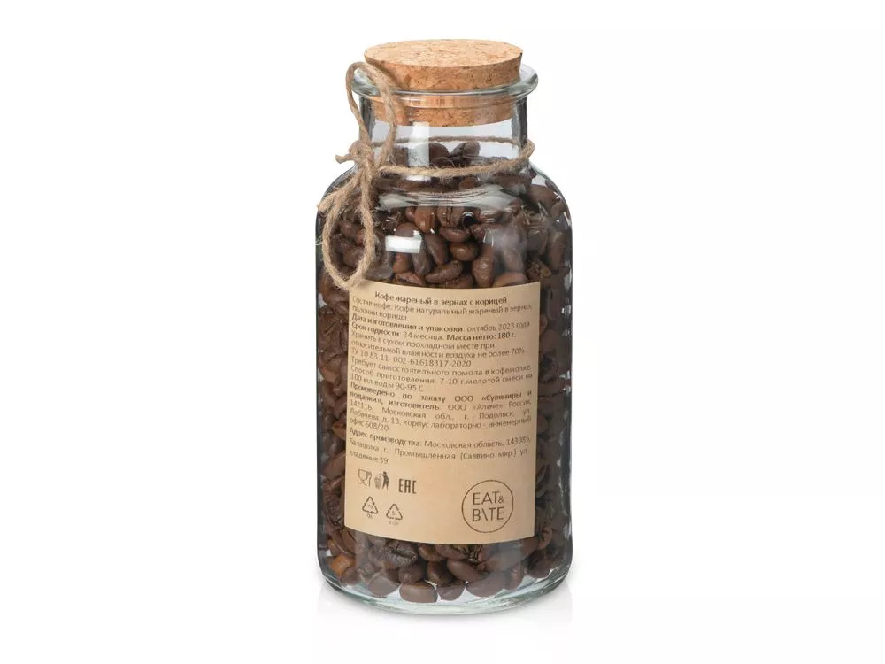 Состав: кофе натуральный жареный в зернах, палочки корицы. Тампопечать (1 цвет (цветные изделия)) на данный товар осуществляется бесплатно. Оплачивается только настройка оборудования в размере 4000 рублей на весь тираж.