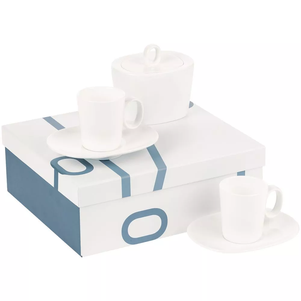 В комплекте 2 кофейных пары и сахарница.