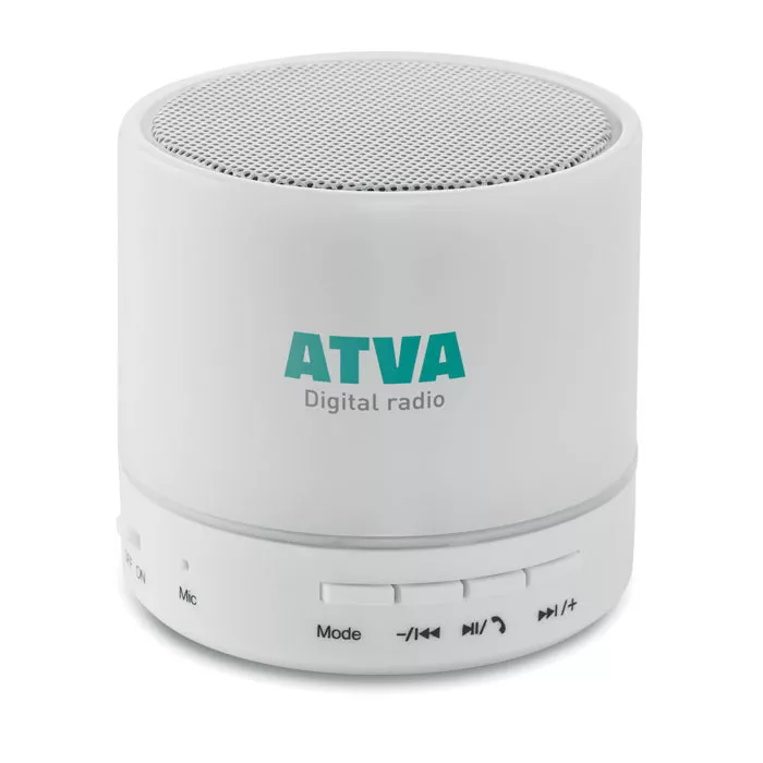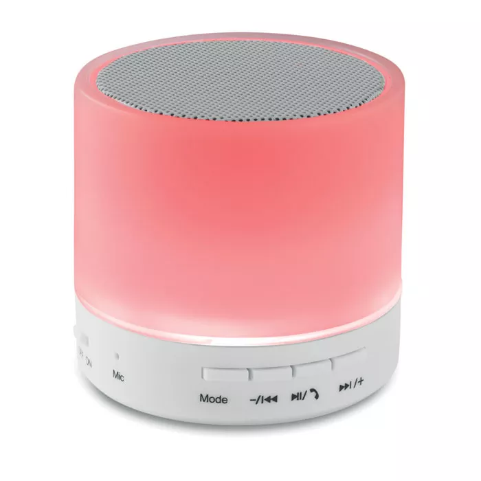 Колонка Bluetooth 2.1 круглой формы, переливающаяся 3 цветами. Есть функция хэндс фри ответа на звонок. Имеется разъем для SD карты и AUX/USB кабель. Работает от литий- ионного аккумулятора 450 мАч (включен).