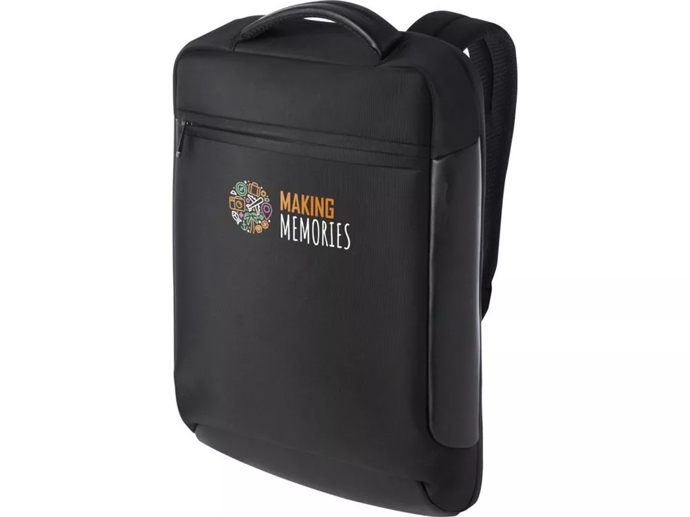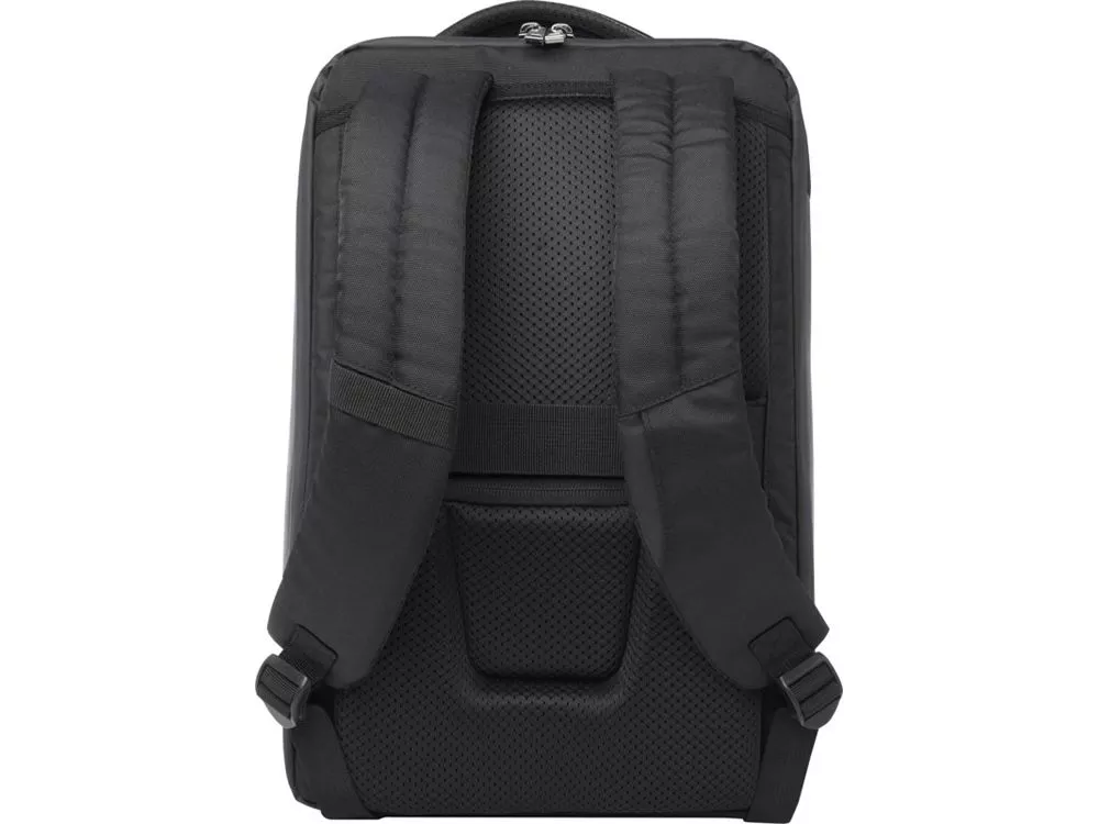 Изящный, компактный и прочный рюкзак для ноутбука Expedition Pro, сертифицированный по стандарту GRS, станет идеальным спутником для профессионалов, которые всегда в пути. Он изготовлен из водоотталкивающего переработанного PET-пластика 900D в сочетании с элементами из полиуретана премиум-класса и подкладкой из переработанного PET-пластика. Он имеет специальное отделение для ноутбука с диагональю 15,6 дюйма, отделение для планшета, несколько карманов-органайзеров, передний карман на молнии и потайной карман прямо под багажным ремнем на спине. Модель имеет мягкие регулируемые лямки, встроенный карман для карточек, петлю для солнцезащитных очков, формованную подкладку из воздушной сетки, а также мягкую ручку, обеспечивающую максимальный комфорт и удобство при переноске. Объем: 12 литр. Не содержит ПВХ. 900DGRS certified recycled polyester.