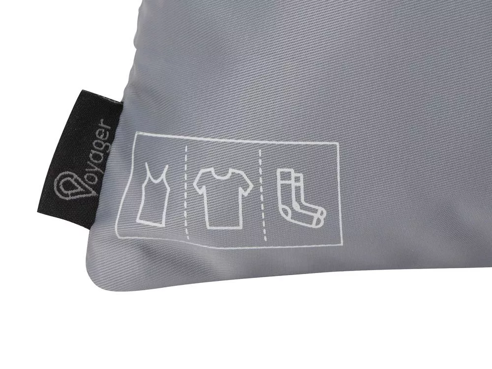 Набор чехлов для одежды от бренда Voyager, выполненный из прочного качественного полиэстера 290D, организует ваши вещи в чемодане во время путешествия и поможет разместить их комфортно в шкафу. В отличие от пакетов чехлы многоразовые, что наверняка понравится защитникам природы, их легко стирать, сушить и хранить. Набор состоит из восьми чехлов, упакованных в один большой с сетчатой стенкой. Этот чехол оборудован ручкой для переноски и кнопками на задней стенке, которые позволяют компактно сложить изделие вдвое в зафиксированном положении для хранения. Чехлы — самых разных форм и размеров, предназначенные для разнообразного содержимого: одежды, обуви, косметики и гигиенических принадлежностей. Чехлы выполнены в виде мешков на кулиске, сумок на молнии, косметичек, некоторые из них оснащены сеткой для циркуляции воздуха и доступного просмотра содержимого, а также ручками для переноски и подвешивания. Иконки на чехлах подскажут, для чего предназначен каждый из них. Удобные язычки молнии выполнены в виде большого кольца, который легко нащупать вслепую, для удобства молния оснащена двумя бегунками. В комплекте: - чехол для гигиенических средств 26,5 х 16 х 7 см, - чехол для носков и белья 26 х 16,5 см, - чехол для футболок и носков 26,5 х 35 см, - чехол для обуви 33 х 22 см, - чехол для футболок и белья 30 х 21 х 12 см, - чехол с сеткой малый 29 х 20 х 12 см, - чехол с сеткой средний 30 х 24 х 12 см, - чехол с сеткой большой 40 х 30 х 12 см Трафаретная печать (1 цвет (цветные изделия)) на данный товар осуществляется бесплатно. Оплачивается только настройка оборудования в размере 8200 рублей на весь тираж.