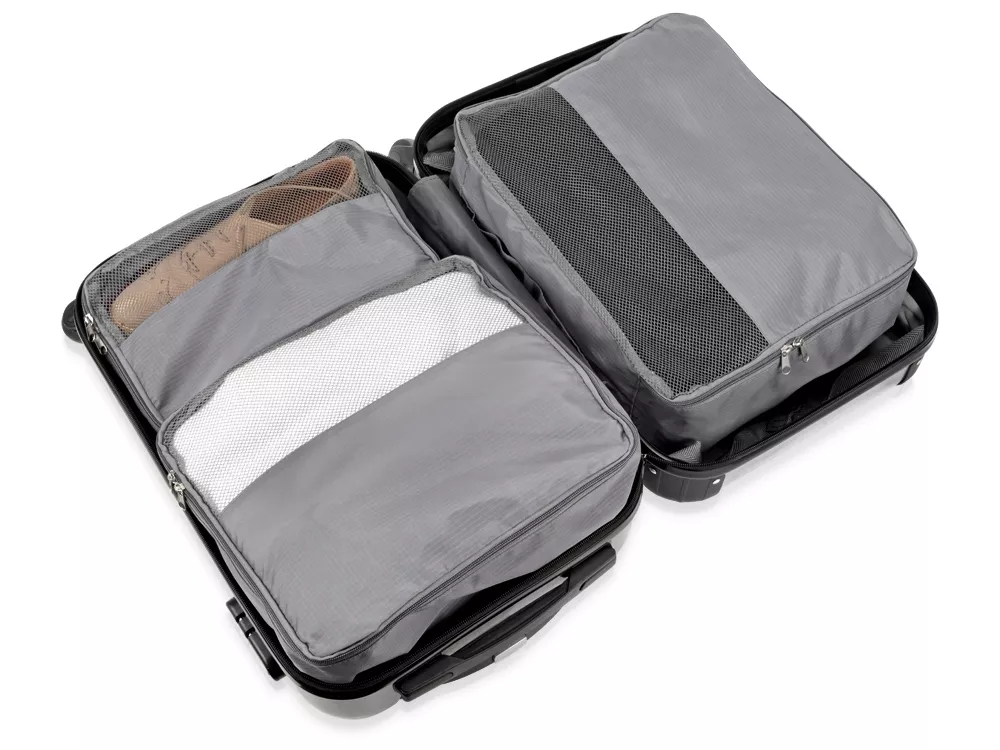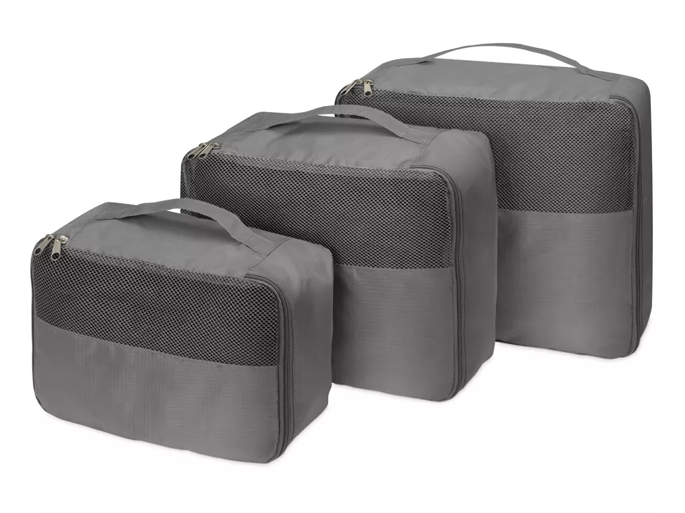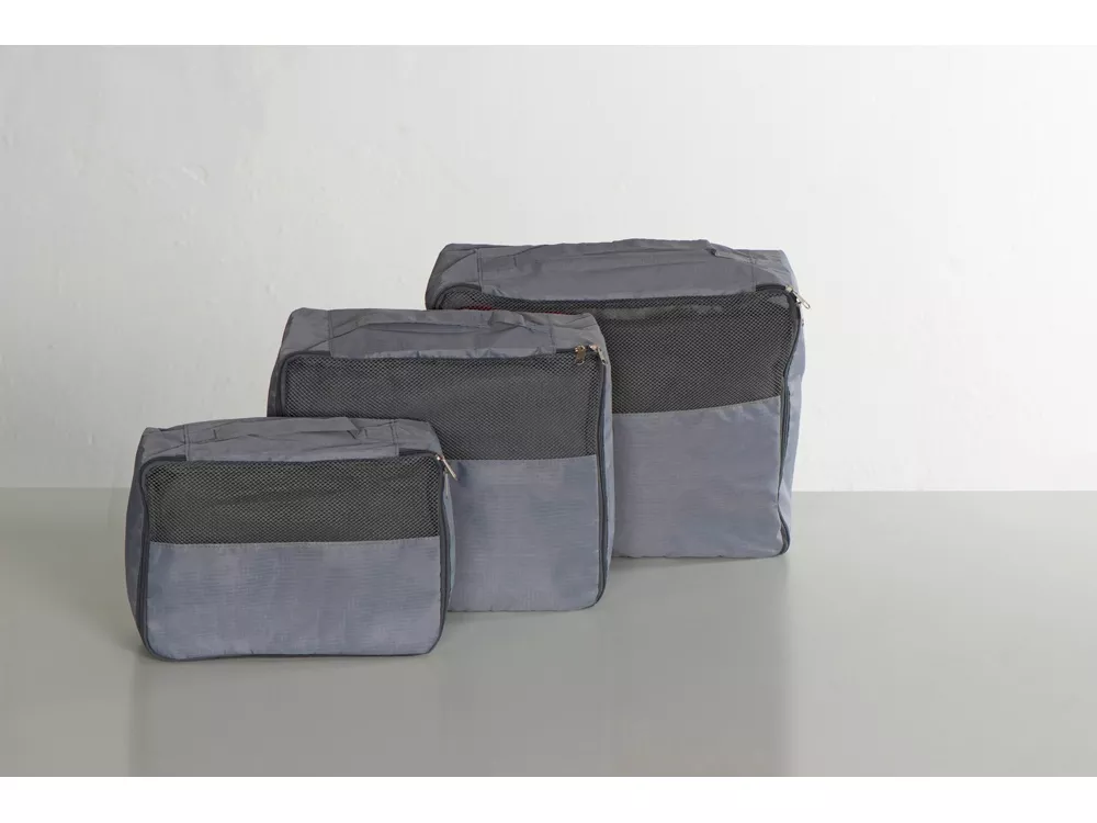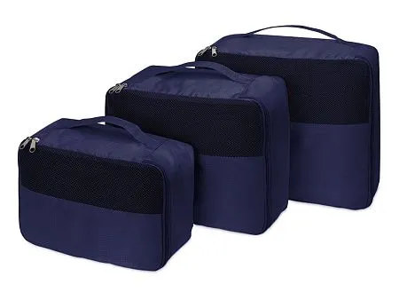 Набор упаковочных сумок – функциональный аксессуар для эргономичного упаковывания различных предметов в багаже. Комплект содержит три чехла разных размеров, удобных для рассортировки и складывания вещей в чемодане или дорожной сумке. • Изделия изготовлены из прочной, но легкой ткани рипстоп и не утяжеляют багаж. • Сумки удобны в пользовании: их верхняя часть полностью откидывается, облегчая упаковывание вещей, и застегивается на молнию. • Сетчатая вставка сбоку позволяет увидеть содержимое, а удобная ручка – вытащить ту из сумочек, в которой находится нужная вещь. • Практичный набор будет полезен не только в путешествии, но и дома для эргономичного хранения вещей в шкафу.