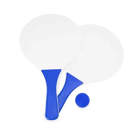 Комплект из двух пляжных ракеток с мячом. Корпус ракетки белого цвета, ручка того же цвета, что и мяч.