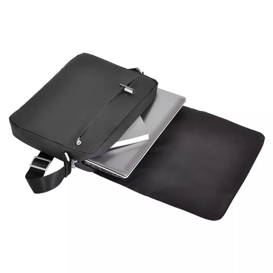 Деловая сумка из микрофибры (водо и пылеотталкивающая ткань). Подкладочная ткань - полиестер. Внутри: отделение для ноутбука планшета с мягким наполнителем, отделение для бумаг, карман на молнии, 2 кармана для мелочей. Наружный карман на молнии с отделениями для ручек, документов и телефона. Карман на клапанет с молнией. Идеальна для деловых поездок. Регулирующийся плечевой ремень с мягкой накладкой. Шильд для гравировки 4,9*1,5 см.