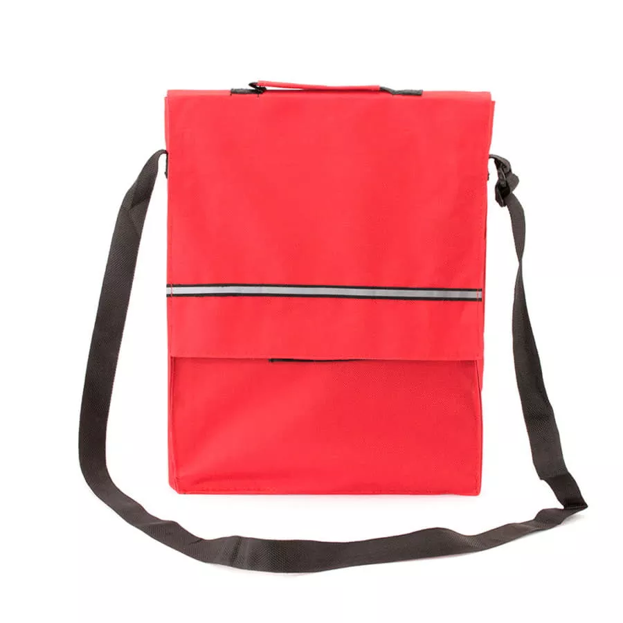 Сумка для документов с клапаном на липучке из полиэстера 600D со светоотражающей полосой спереди. С усиленными ручками, регулируемым плечевым ремнем и внутренними отделениями с карманами для ручки и смартфона.
