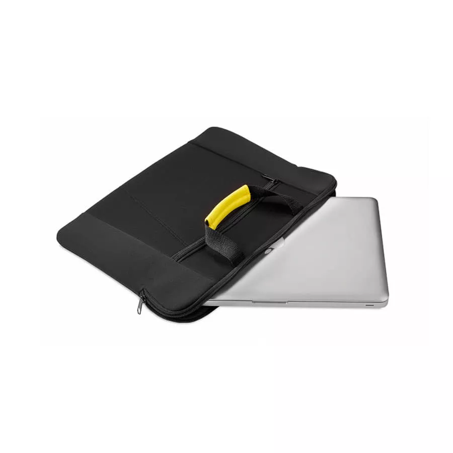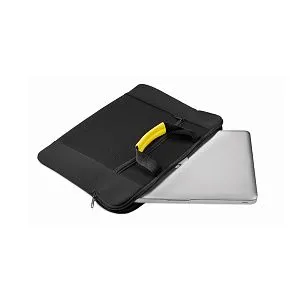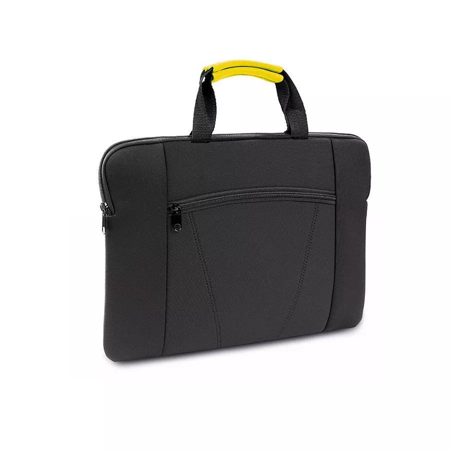Результаты перевода Прочная сумка для документов с мягкой оболочкой, застежкой-молнией и передним карманом. Элегантная отделка черного цвета с цветными усилениями на ручках.