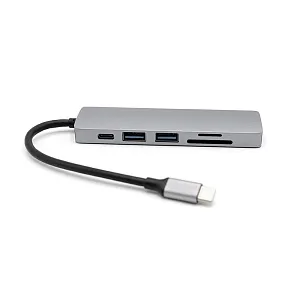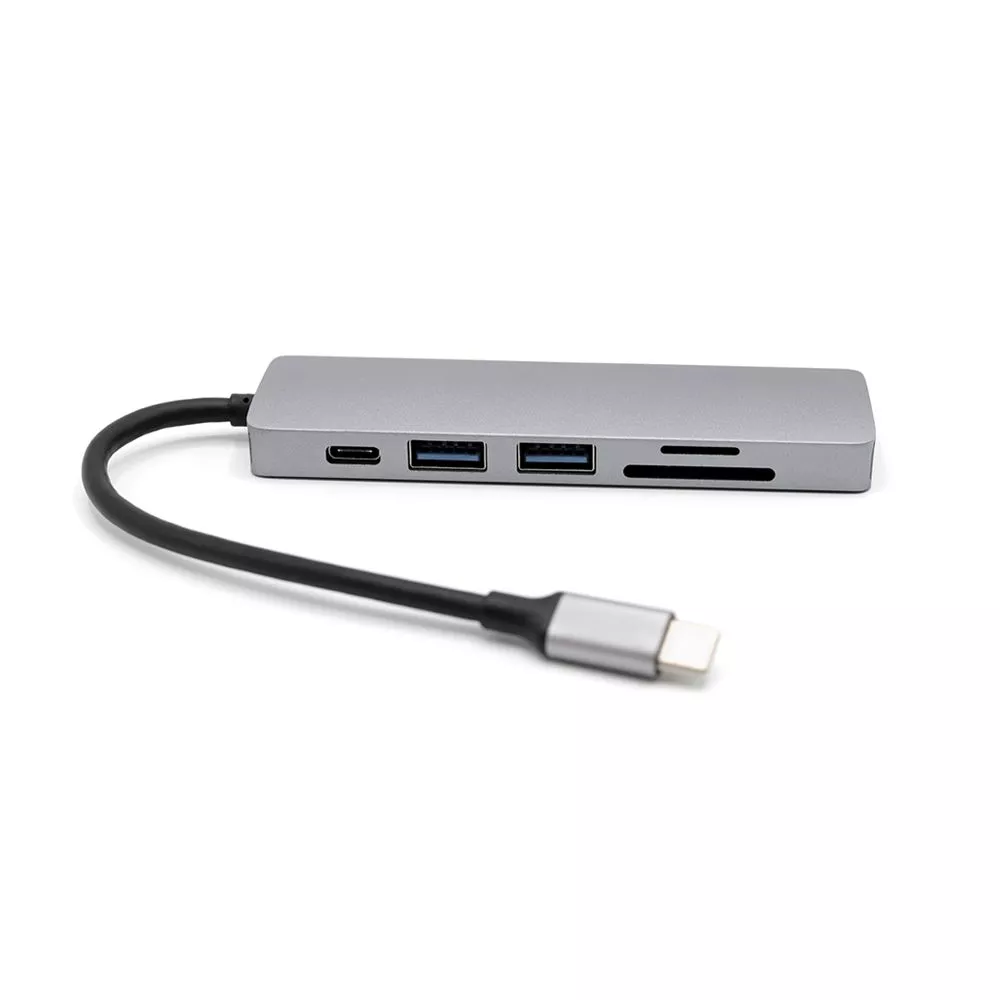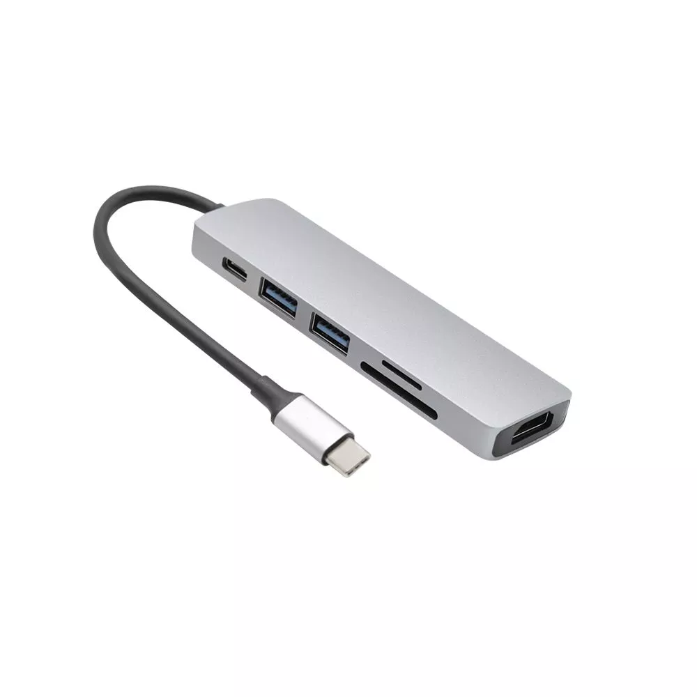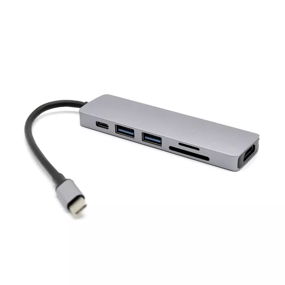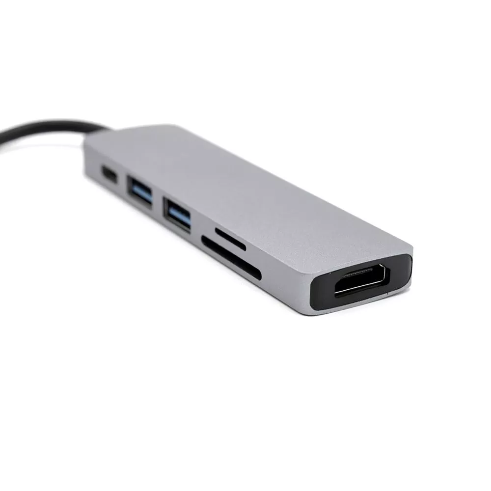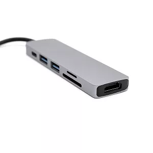 Концентратор Sixto 6 в 1 позволяет расширить возможности Вашего компьтера, ноутбука или рабочего стола. Подключение осуществляется при помощи надежного кабеля Type-C, что позволяет синхронизировать работу подключить компьютера, ноутбука или планшета. Порт №1 - слот для чтения накопителей памяти TF. Порт №2 - слот для чтения накопителей памяти SD. Порт №3 - стандартный адаптер, который поддерживает чтение накопителей памяти версии USB 2.0 или подключение дополнительных устройств (передача данных до 480 Мбит/с). Можно подключать кабель USB для зарядки смартфона. Порт №4 - высокопроизводительный порт версии USB 3.0 для подключения периферийных устройств: флешка, внешний жесткий диск, картридер, клавиатура, мышь, др. адаптер / хаб, web-камера, принтер, сканер, МФУ и т.п((передача данных до 5Гбит/с). Порт №5 - стандартный адаптер Type-C для подключения дополнительных устройств. Порт №6 - HDMI конвертер, который поддерживает передачи видео и изображений на телефон, телевизор или компьютер.